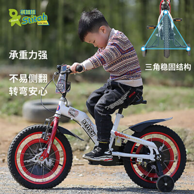 Búp bê Stitch Kei Mustang 3-8 tuổi xe đẩy nam xe đạp trẻ em màu đen trắng xe đạp có bánh phụ