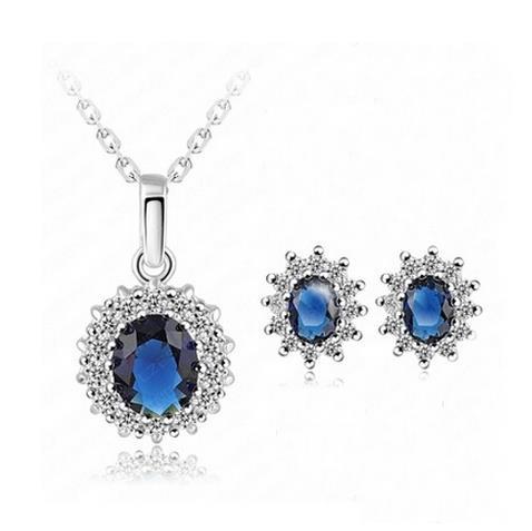 C029 Bộ Trang Sức Nổ Bộ Trang Sức Bán Chạy Nhất Châu Âu Và Mỹ Bộ 2 Bộ Sapphire Bông Tai Vòng Cổ Bông Tai Dây Chuyền Vàng