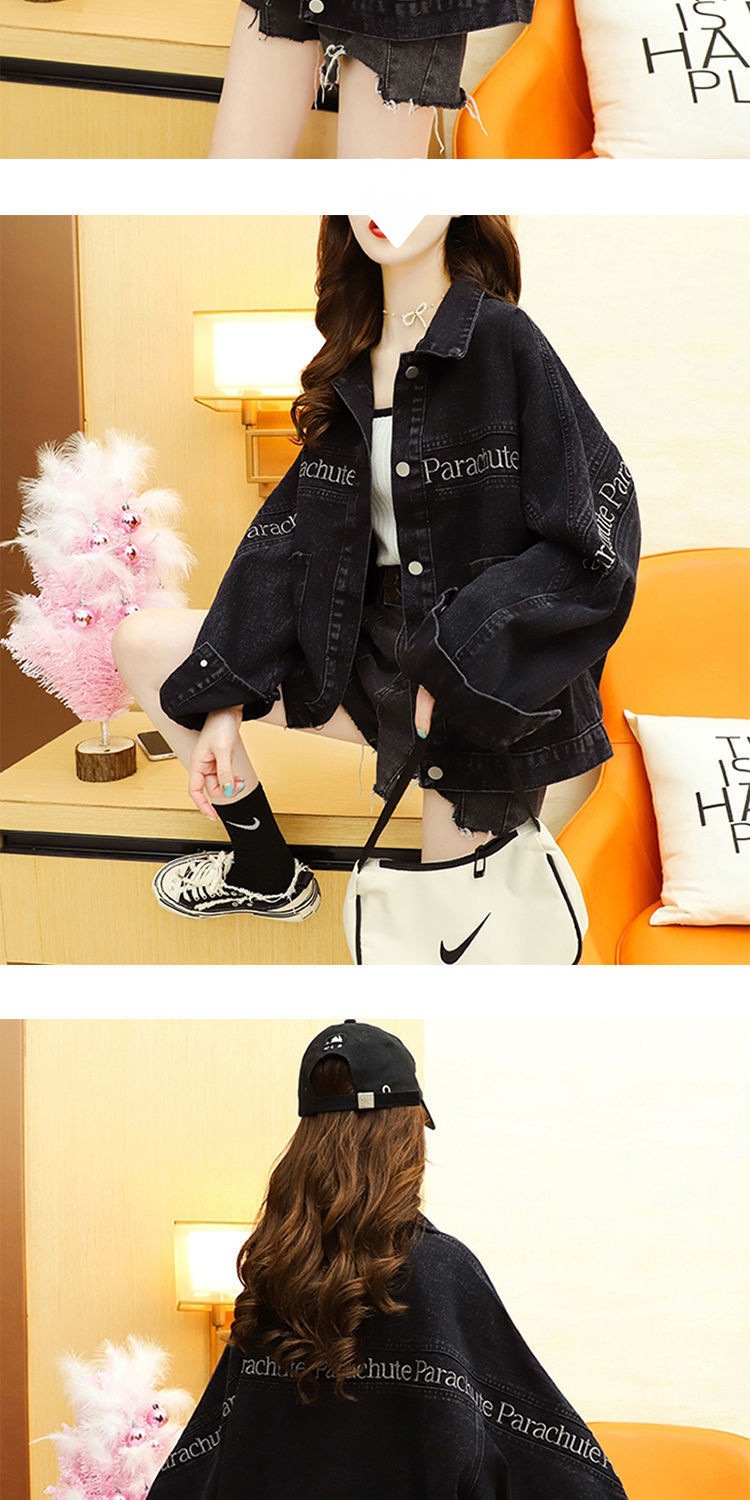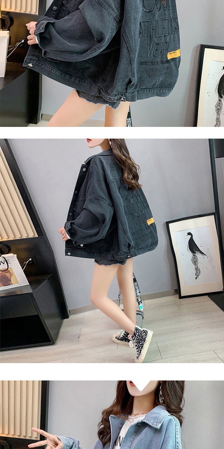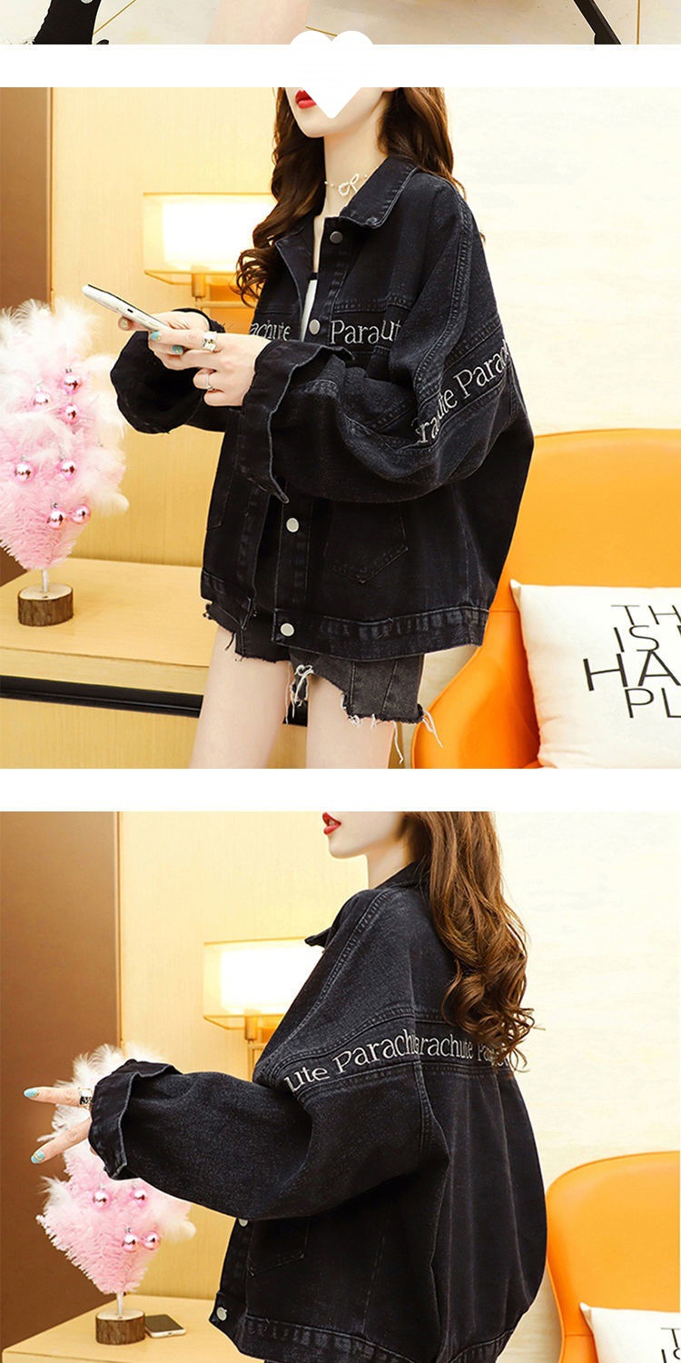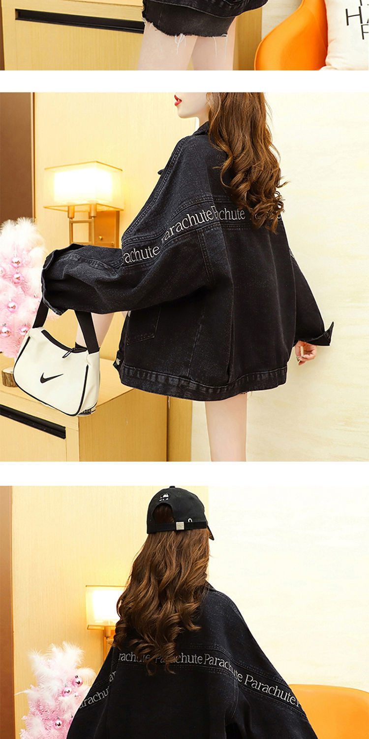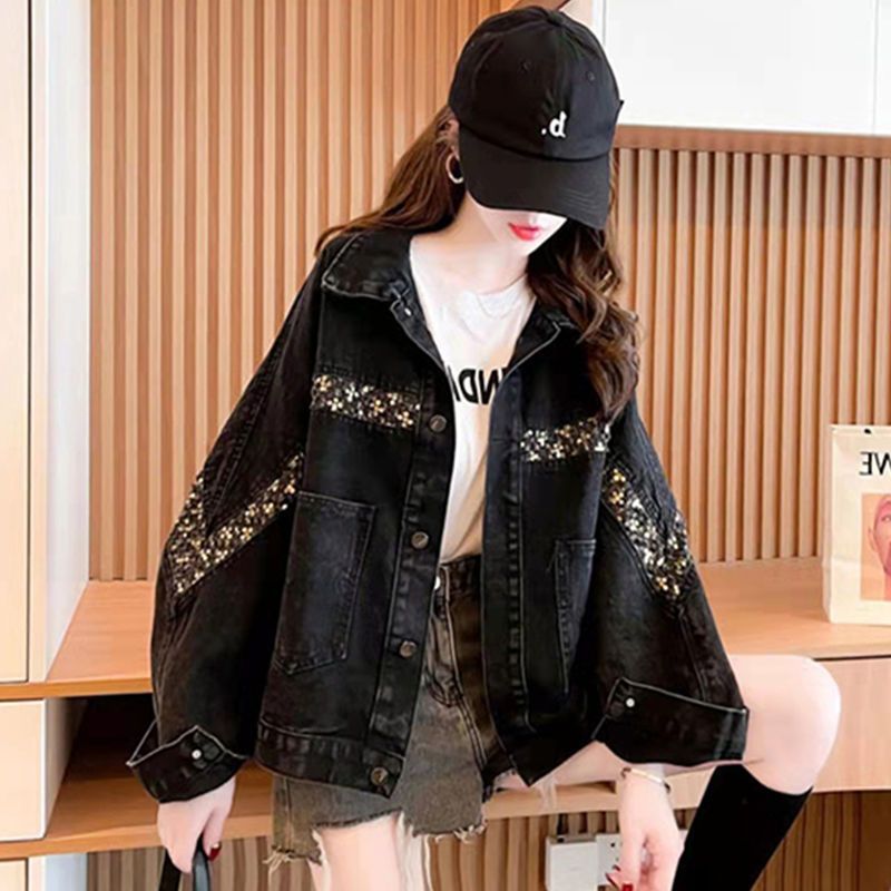 Cá Tính Áo Khoác Denim Nữ Ngắn Rộng Kích Thước Lớn Quần Áo Denim Muối Series Cổ Giảm Béo Mùa Xuân Áo Khoác Nữ