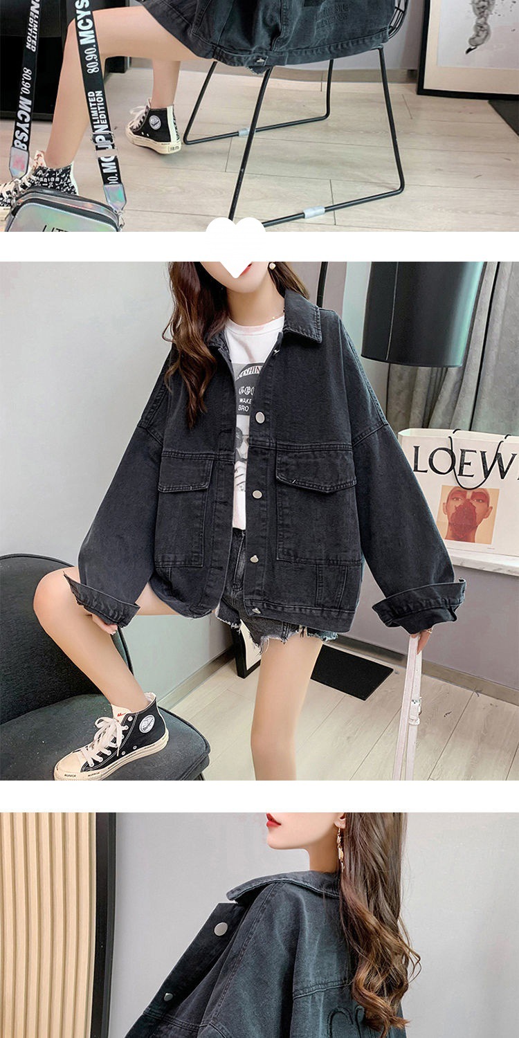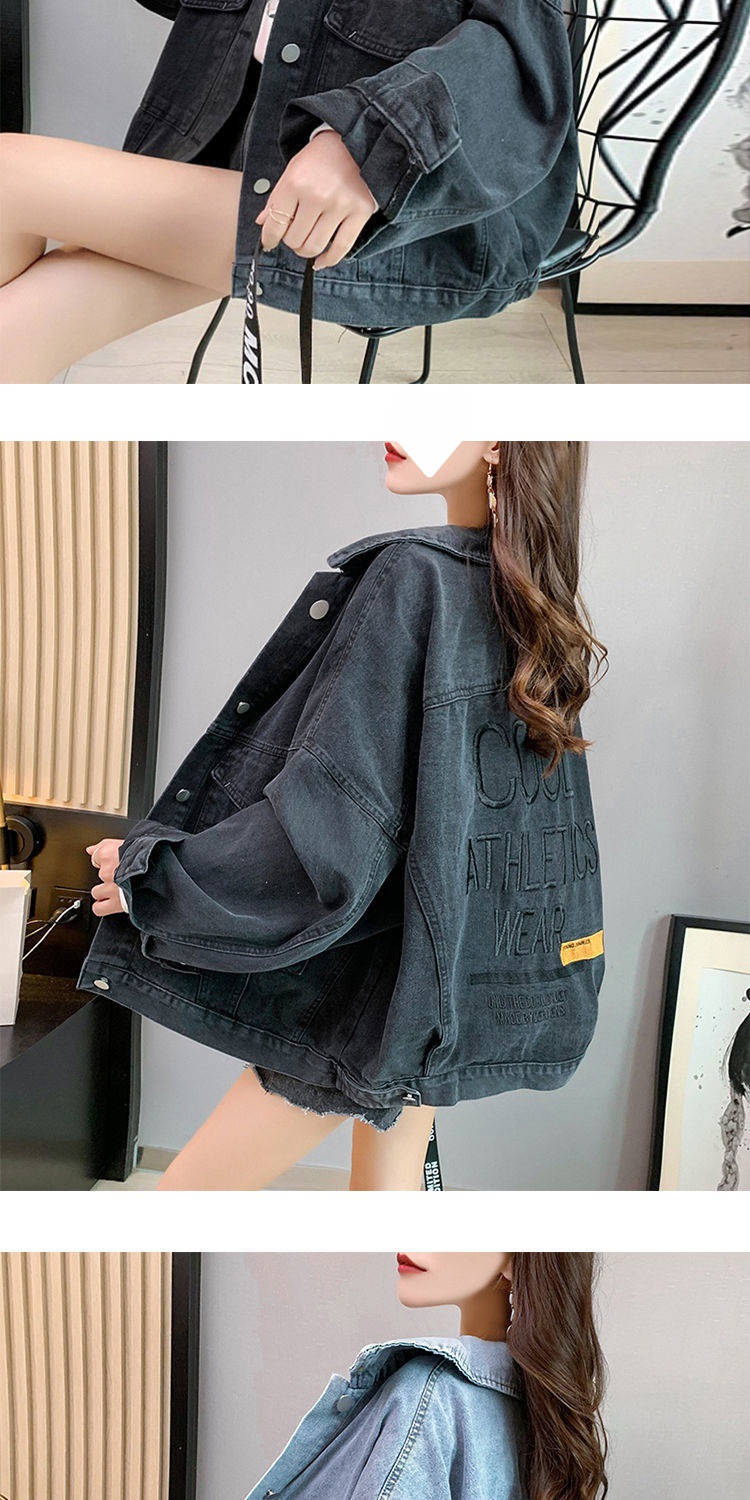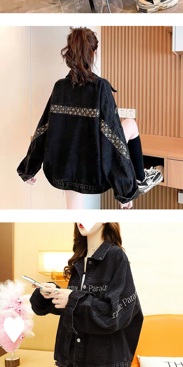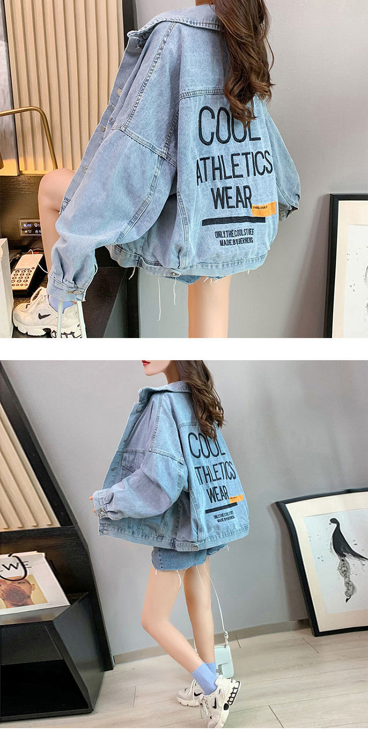 Cá Tính Áo Khoác Denim Nữ Ngắn Rộng Kích Thước Lớn Quần Áo Denim Muối Series Cổ Giảm Béo Mùa Xuân Áo Khoác Nữ