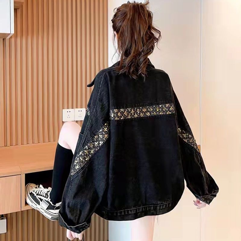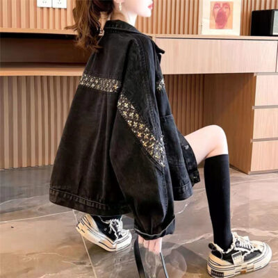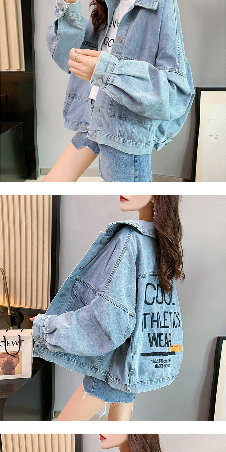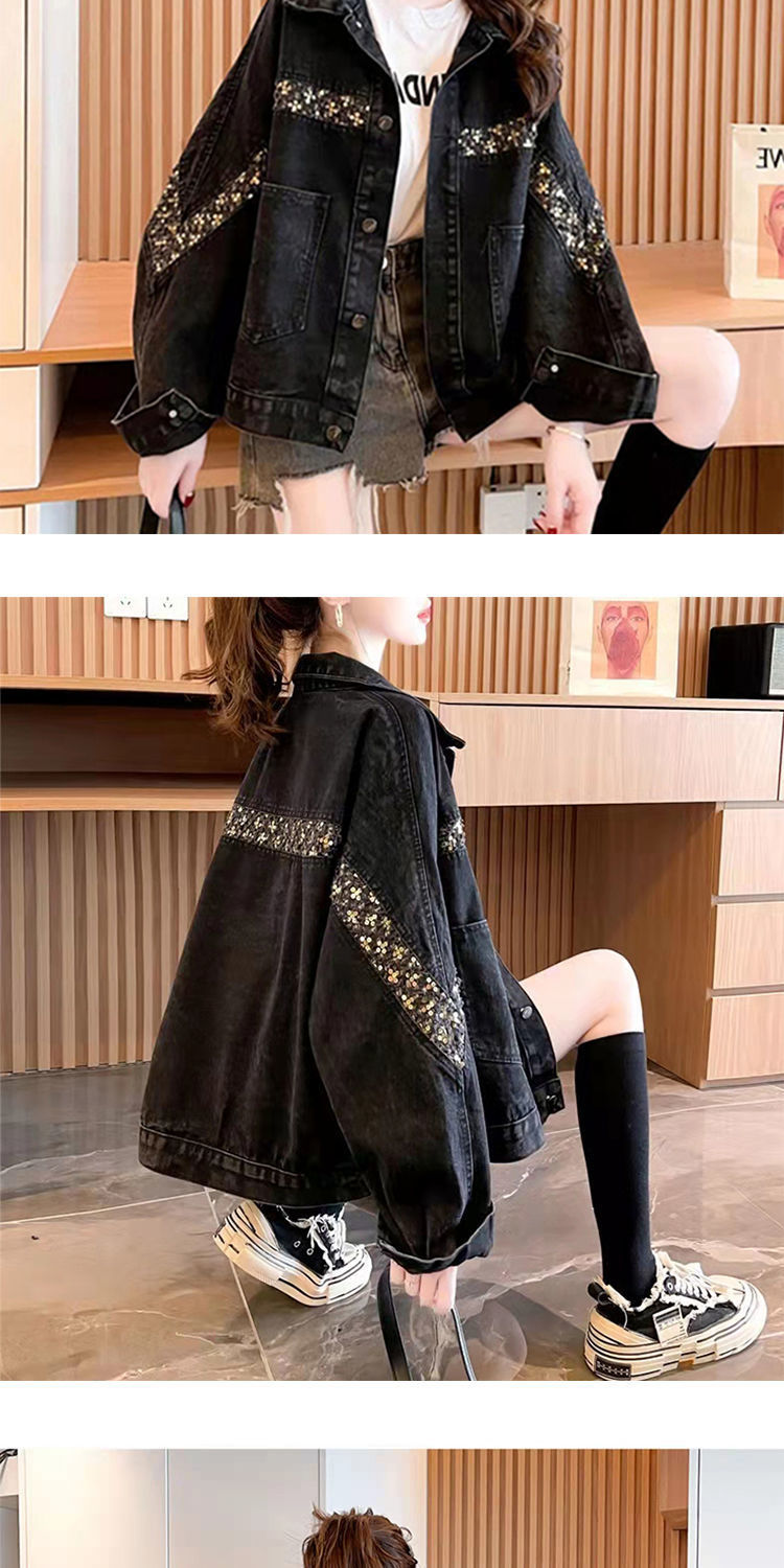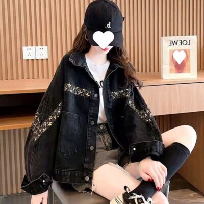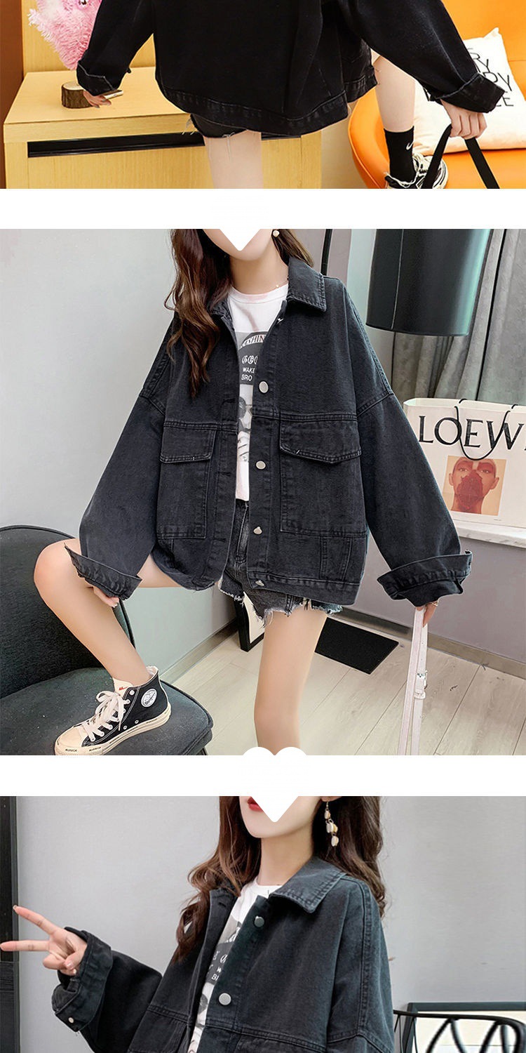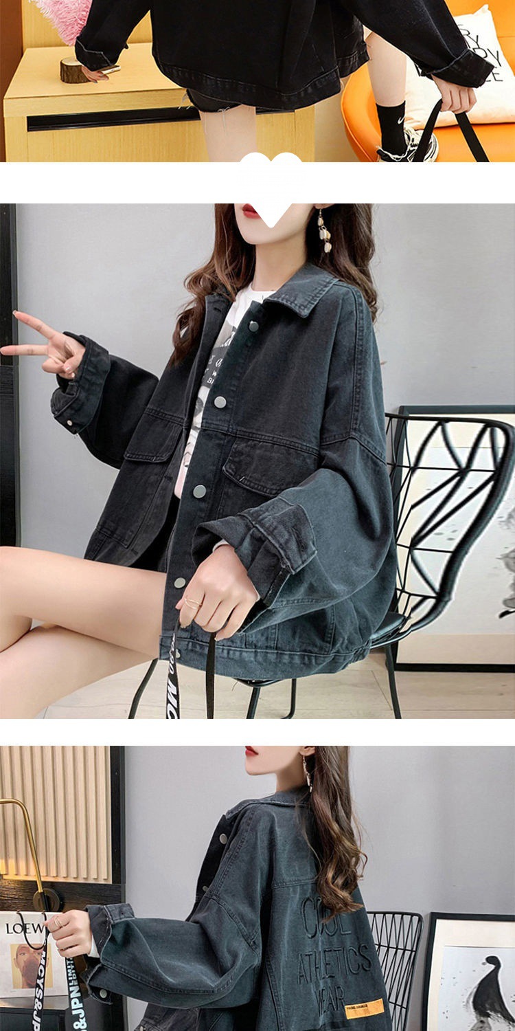Cá Tính Áo Khoác Denim Nữ Ngắn Rộng Kích Thước Lớn Quần Áo Denim Muối Series Cổ Giảm Béo Mùa Xuân Áo Khoác Nữ
