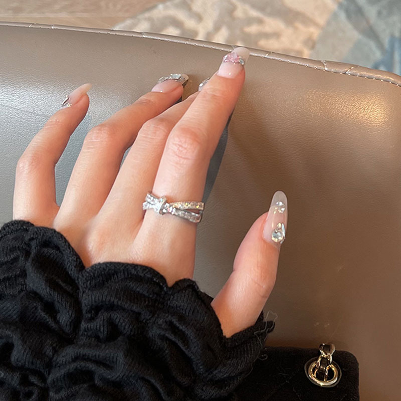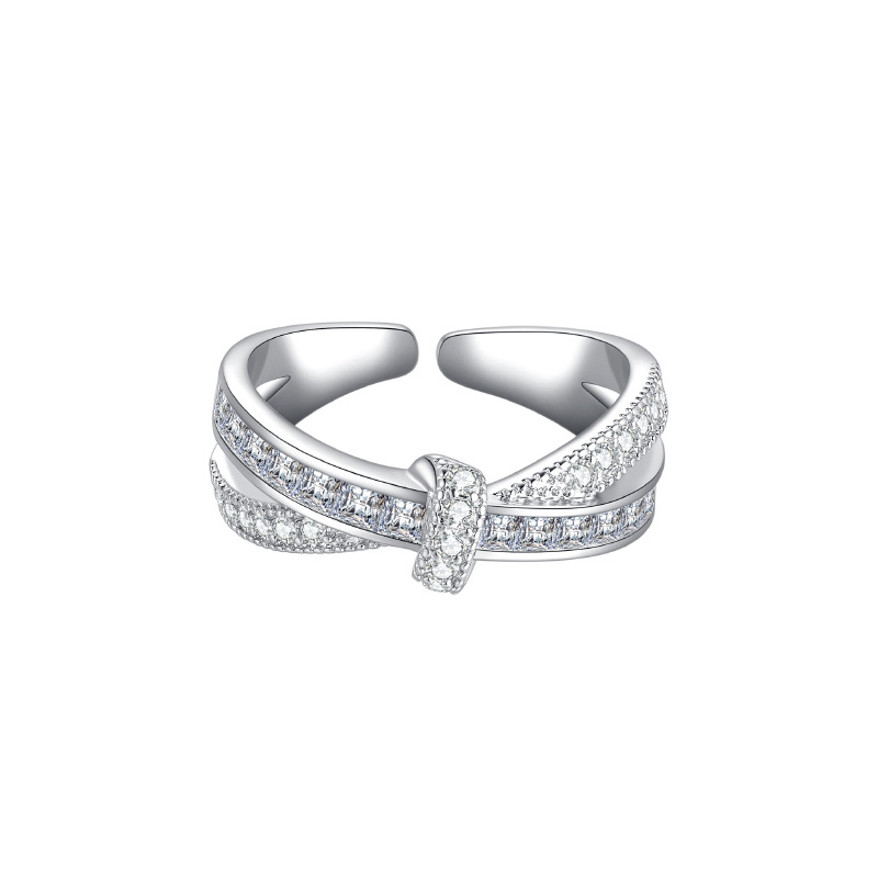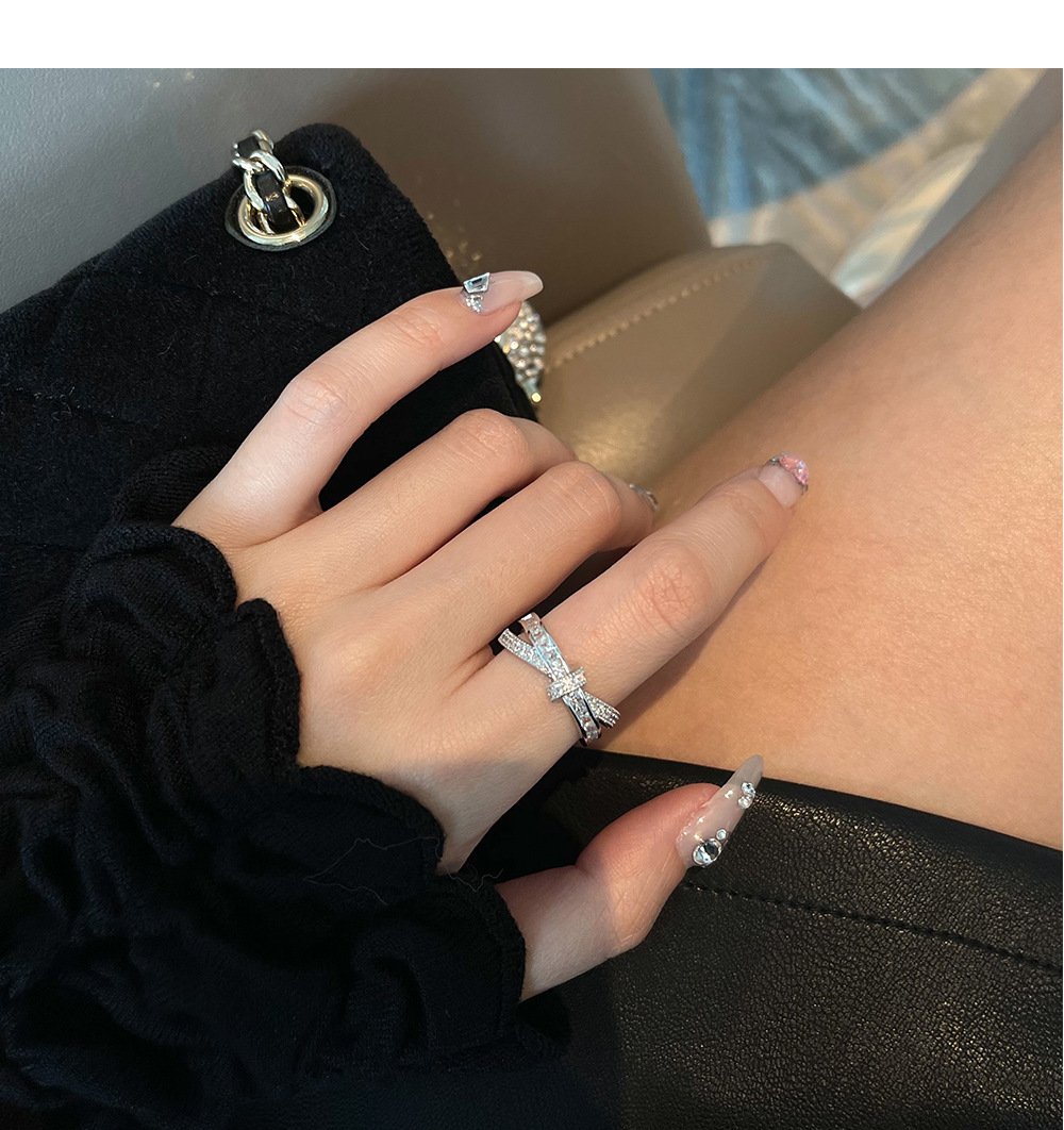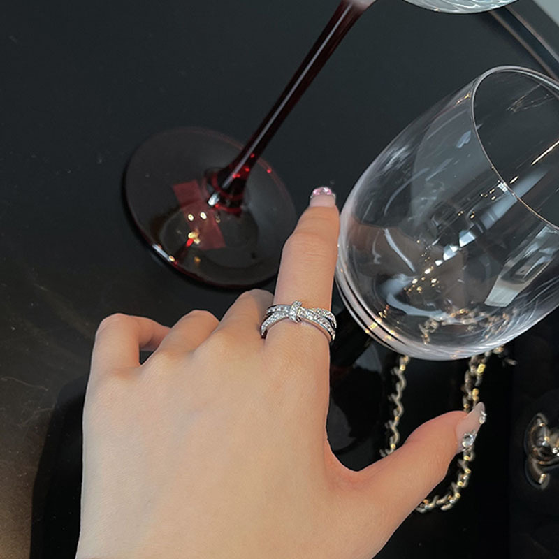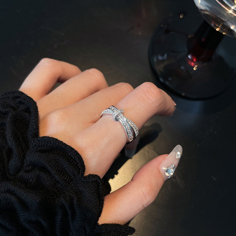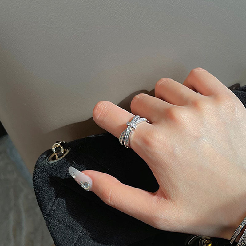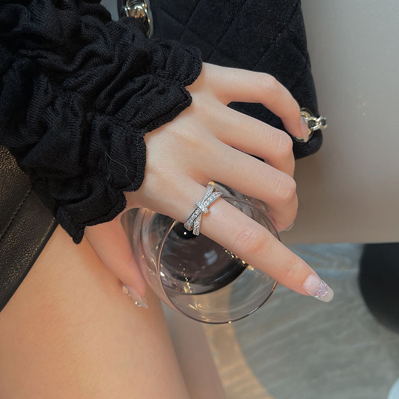 Cá tính đơn giản chữ thập đầy đủ kim cương mở nhẫn nữ thiết kế thích hợp ins phong cách lạnh tinh tế nhẫn ngón trỏ zircon thủy triều