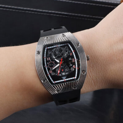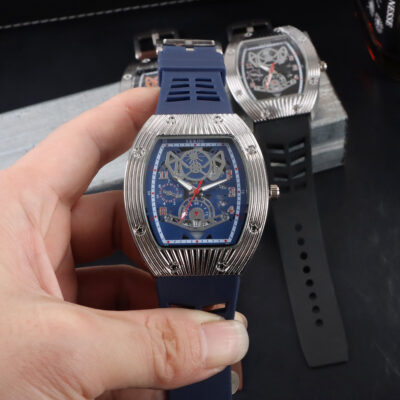 Cá tính hợp thời trang thời trang đồng hồ hình thùng thể thao nam phù hợp đồng hồ rỗng lịch dạ quang đồng hồ thạch anh JTX3