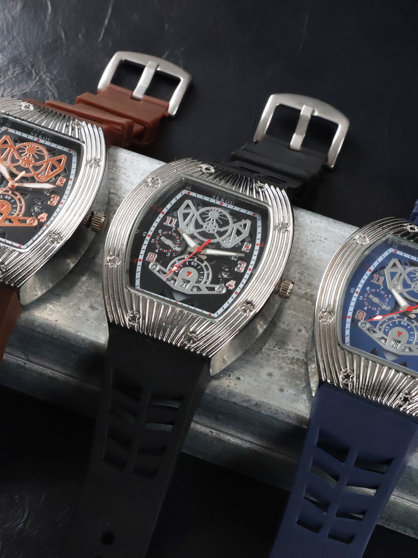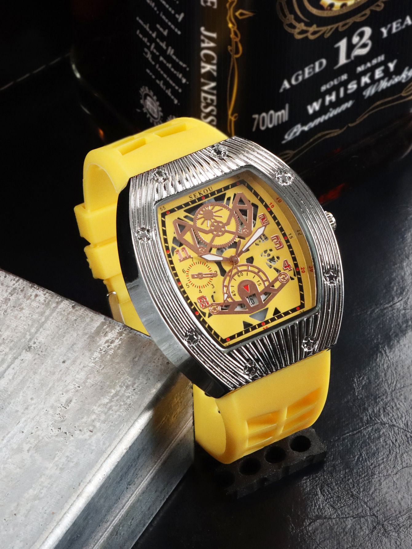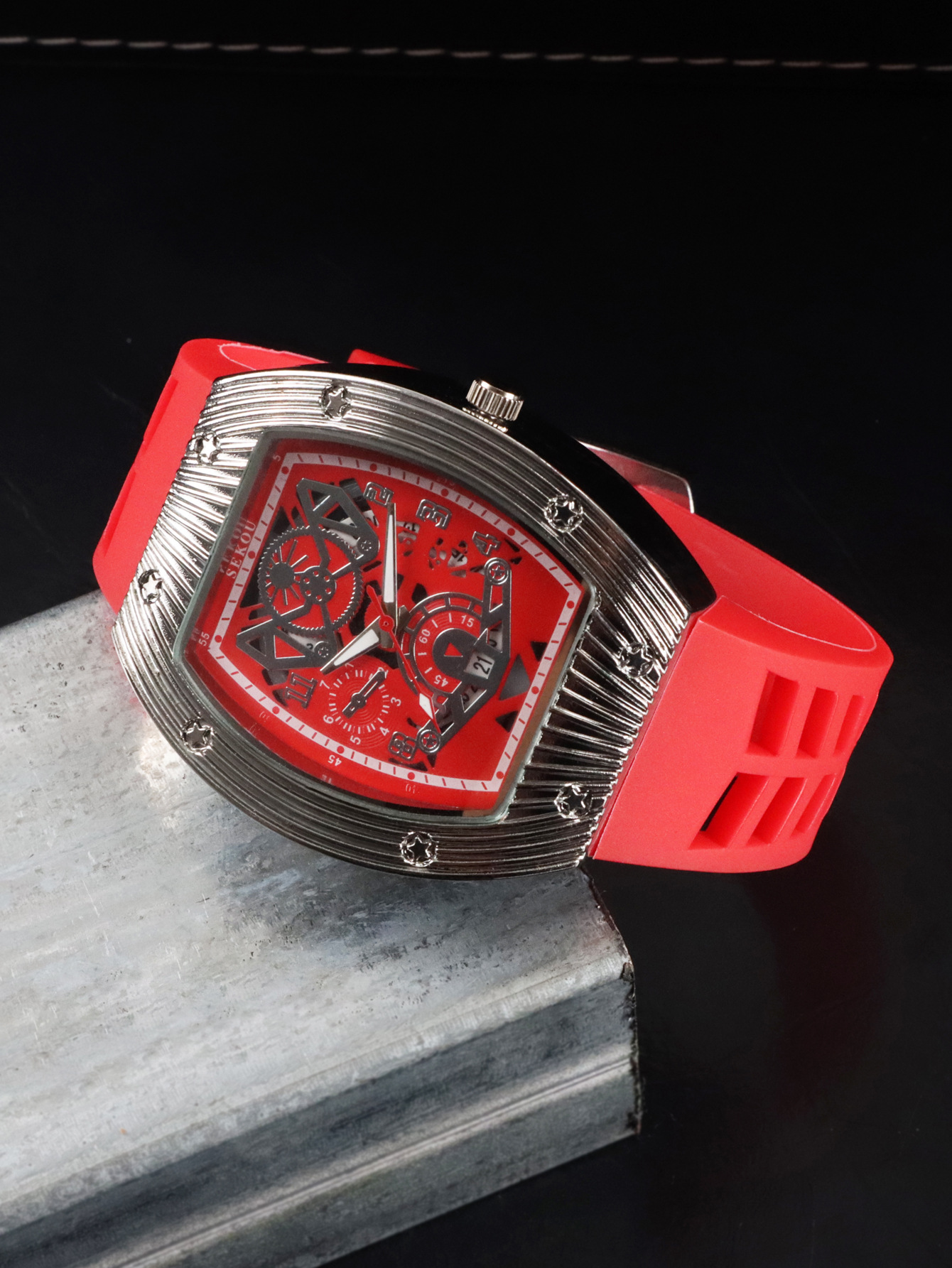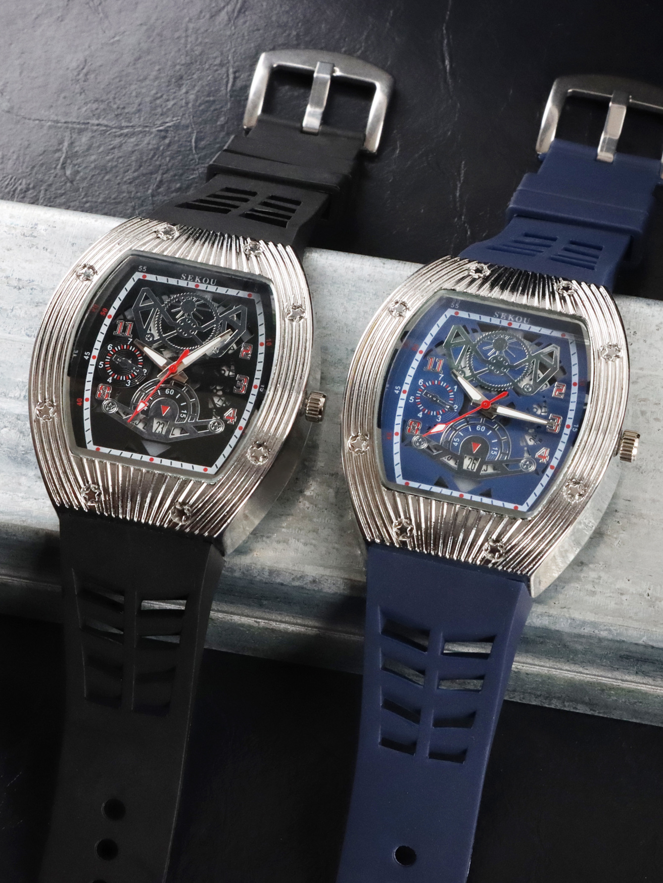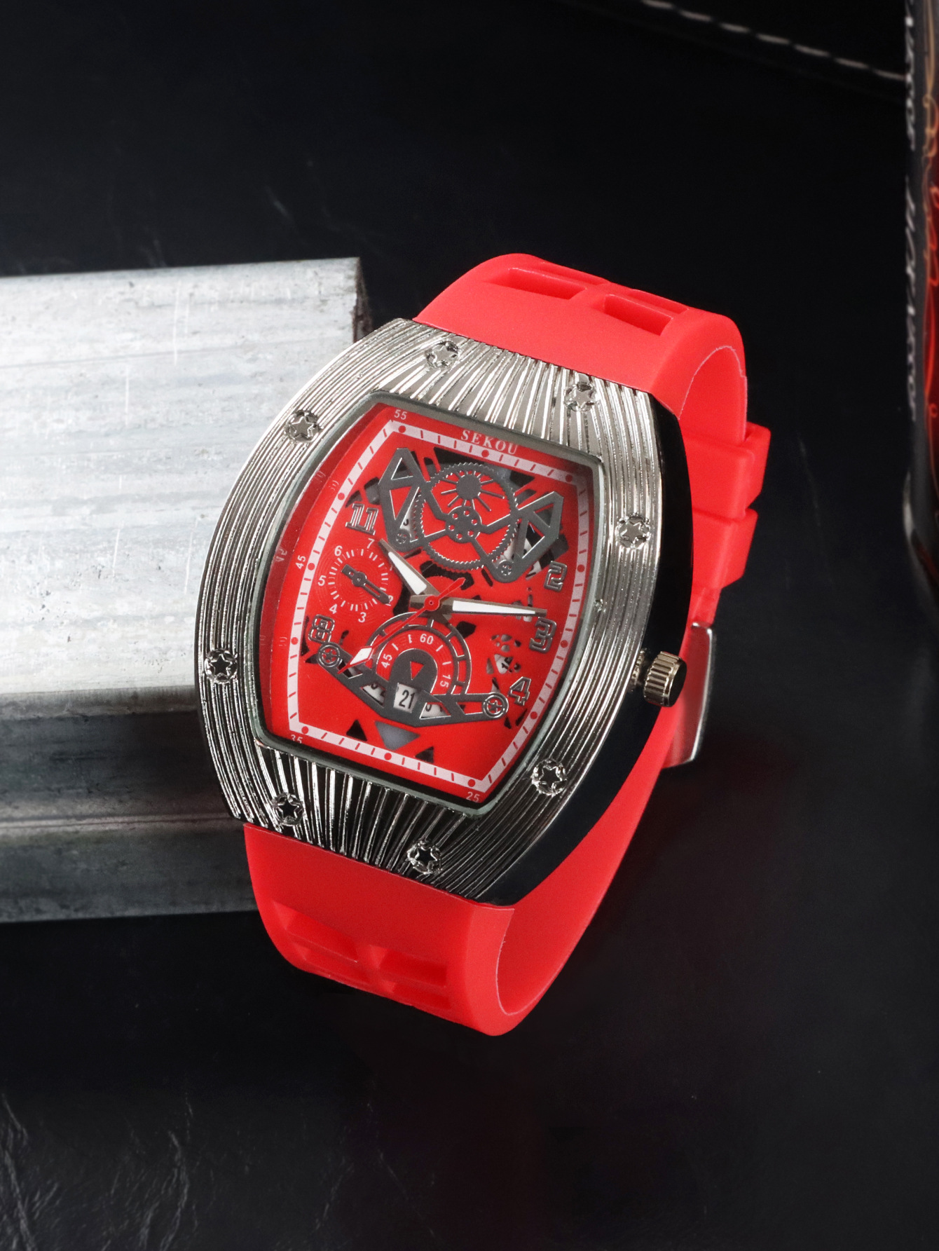Cá tính hợp thời trang thời trang đồng hồ hình thùng thể thao nam phù hợp đồng hồ rỗng lịch dạ quang đồng hồ thạch anh JTX3