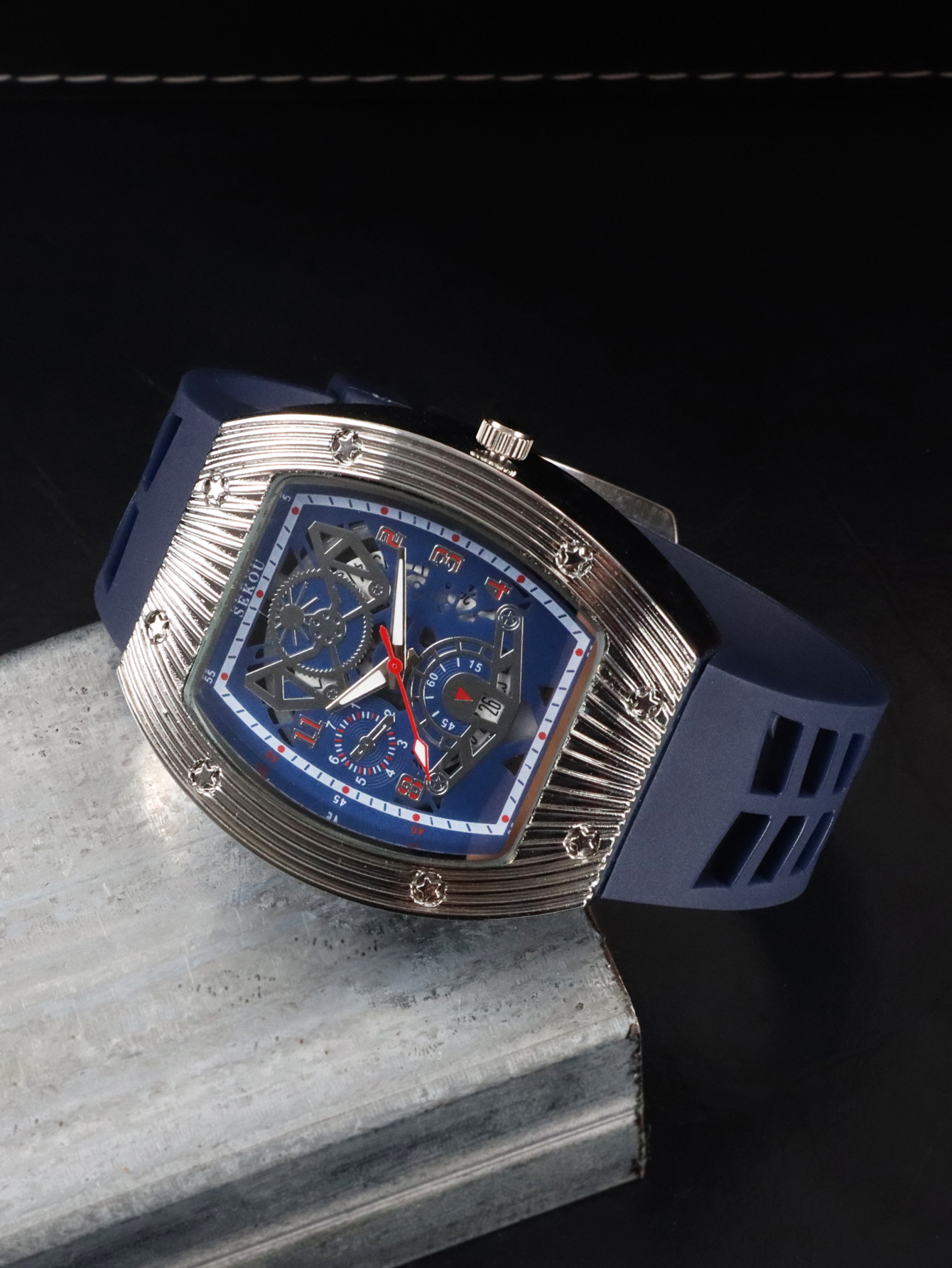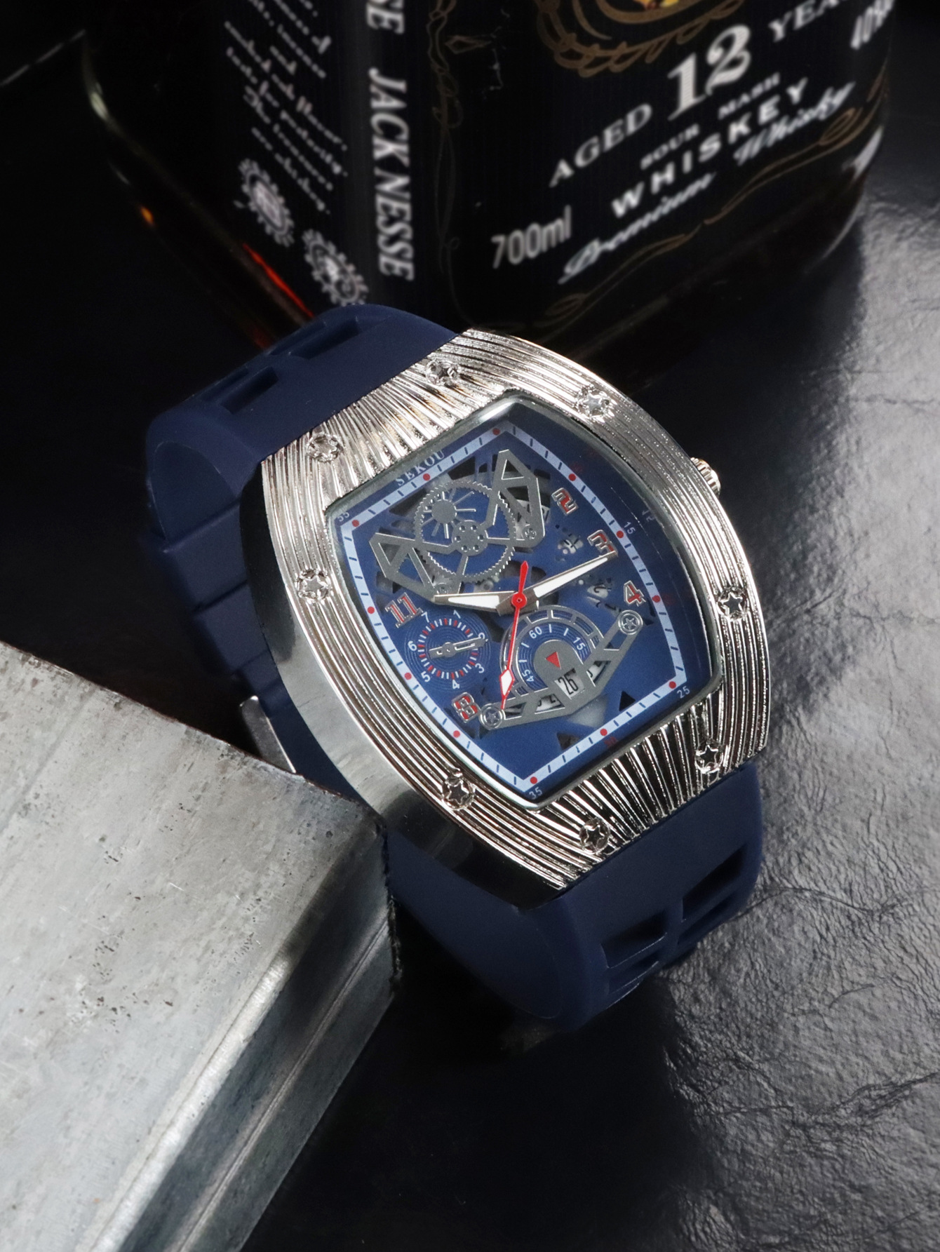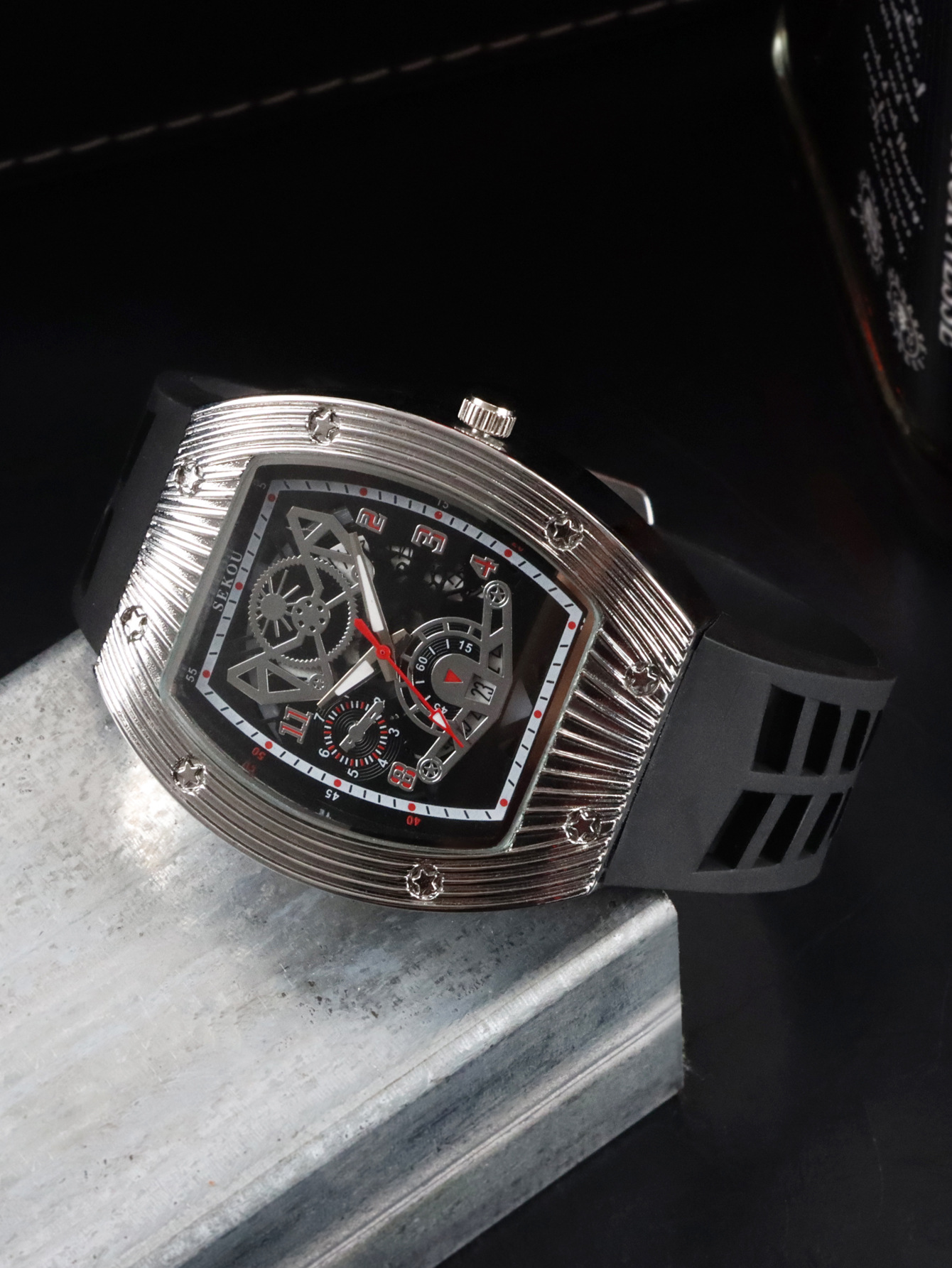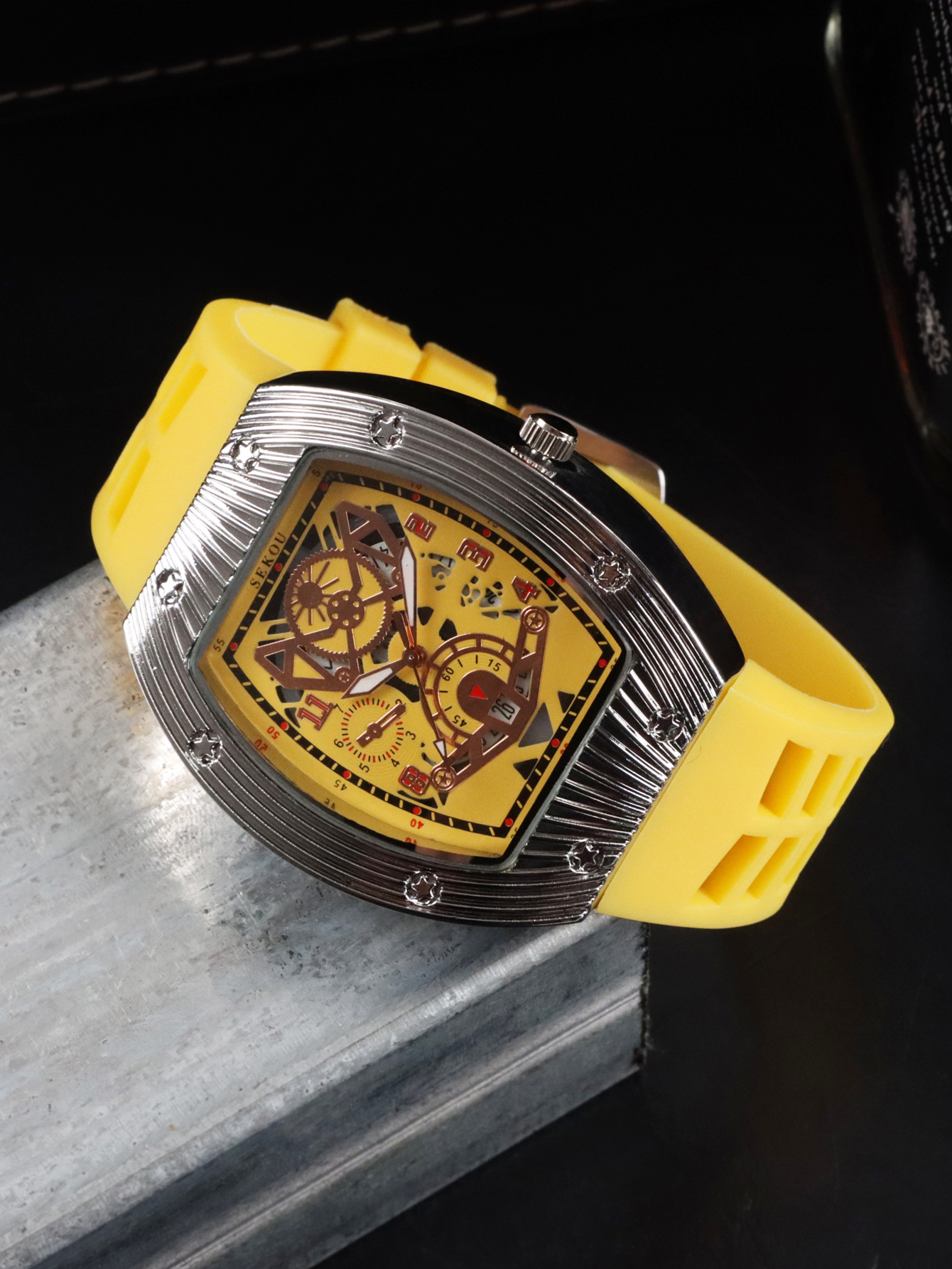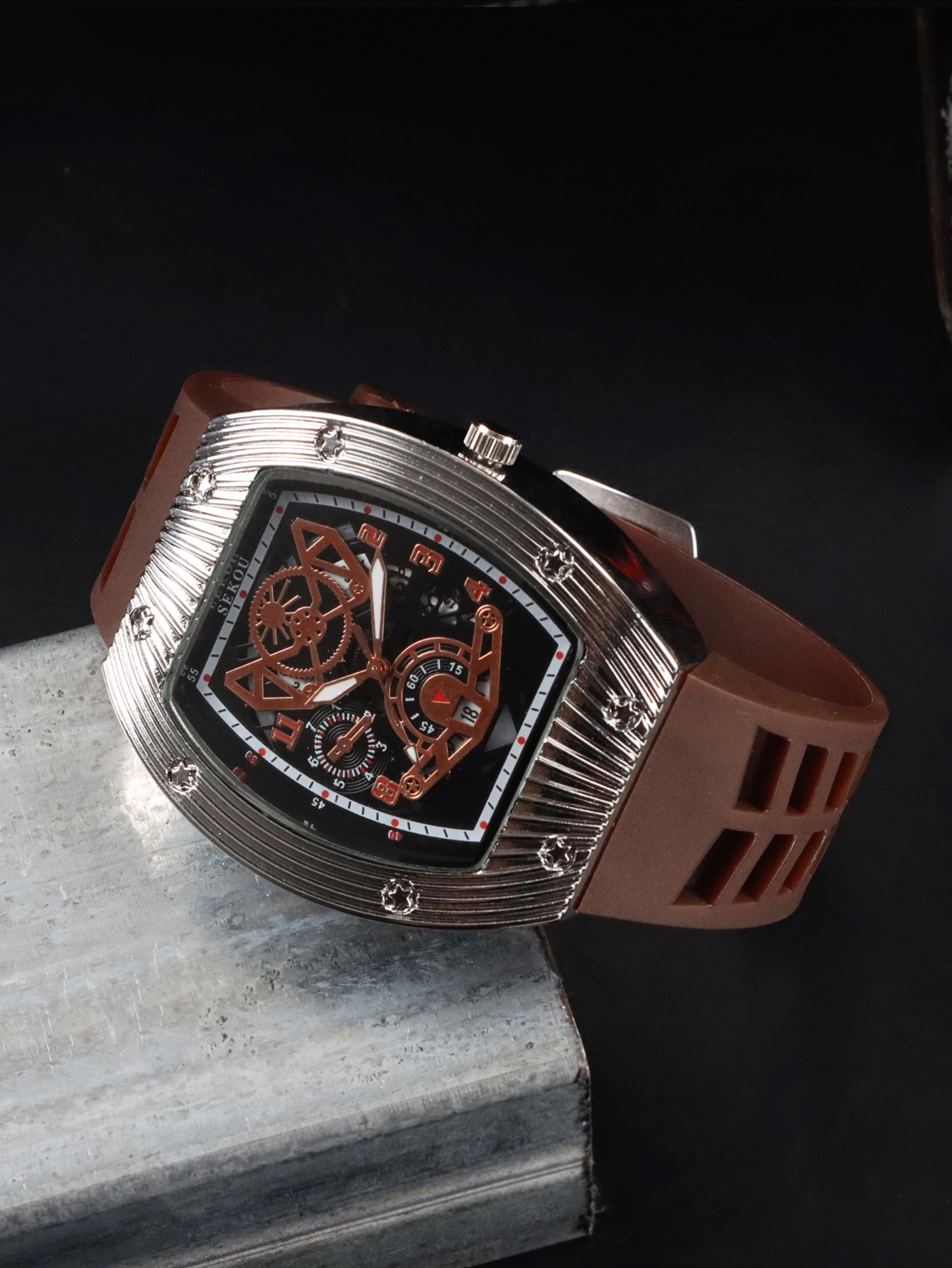 Cá tính hợp thời trang thời trang đồng hồ hình thùng thể thao nam phù hợp đồng hồ rỗng lịch dạ quang đồng hồ thạch anh JTX3