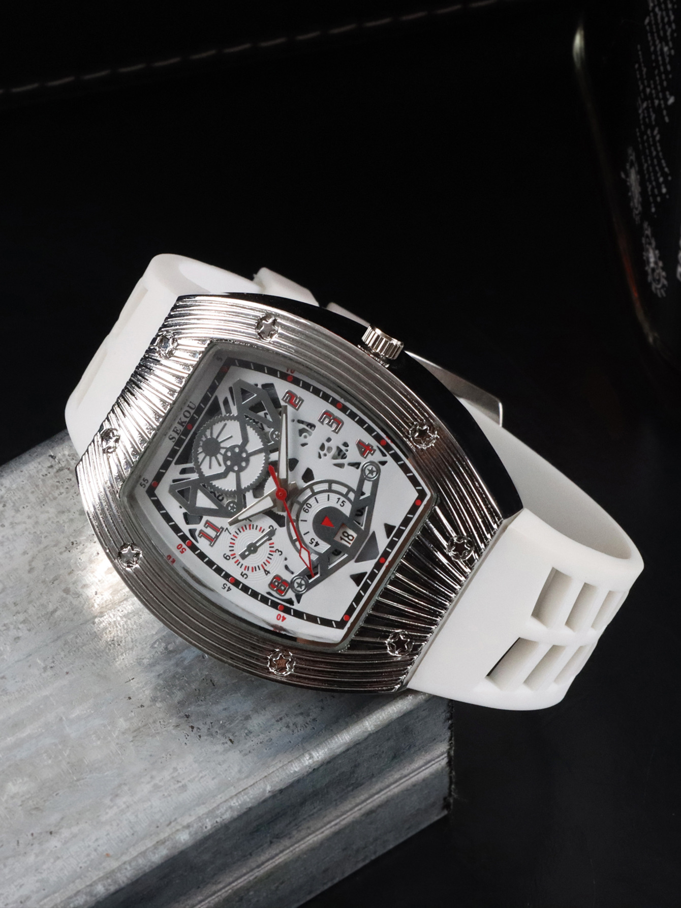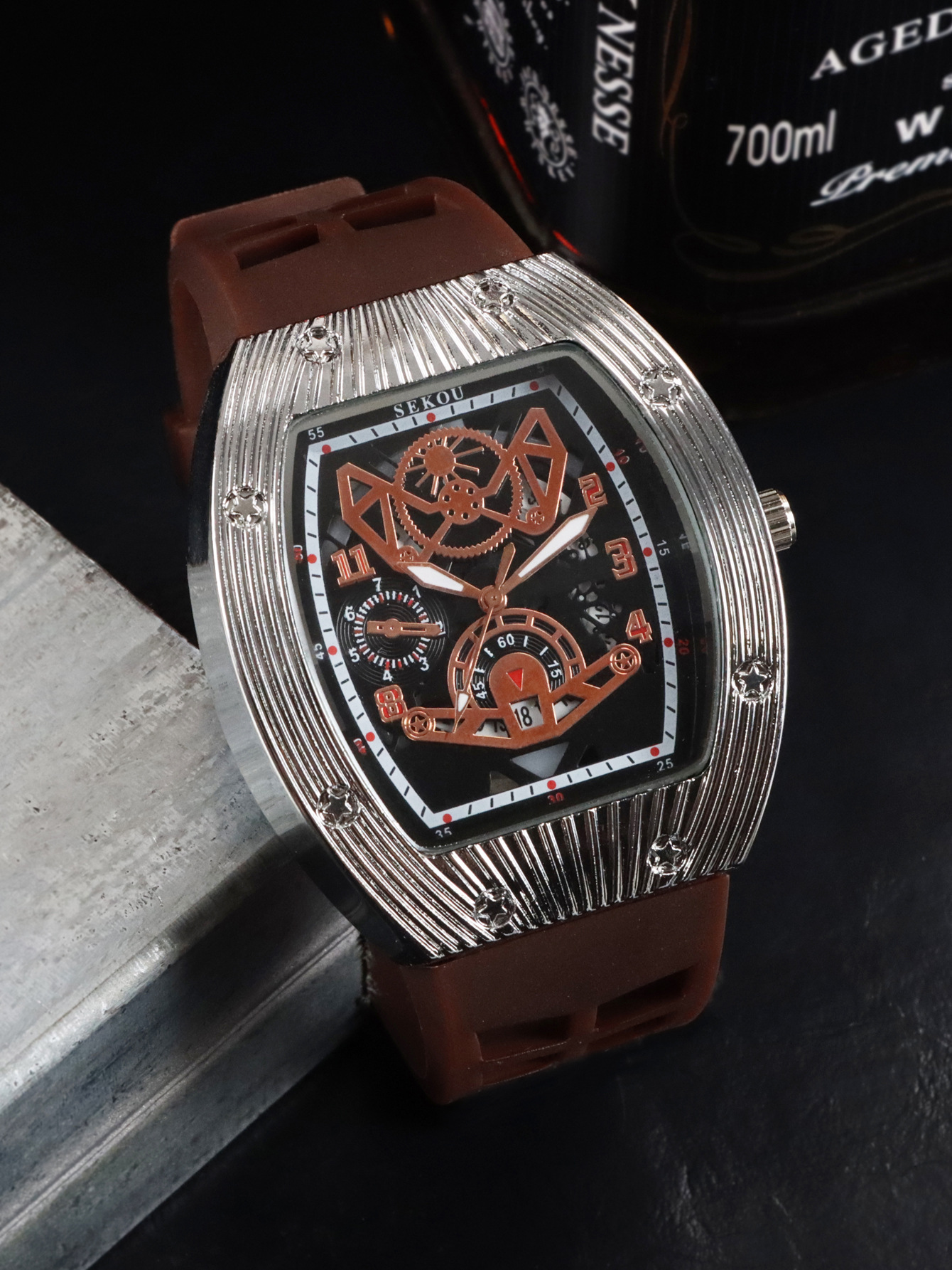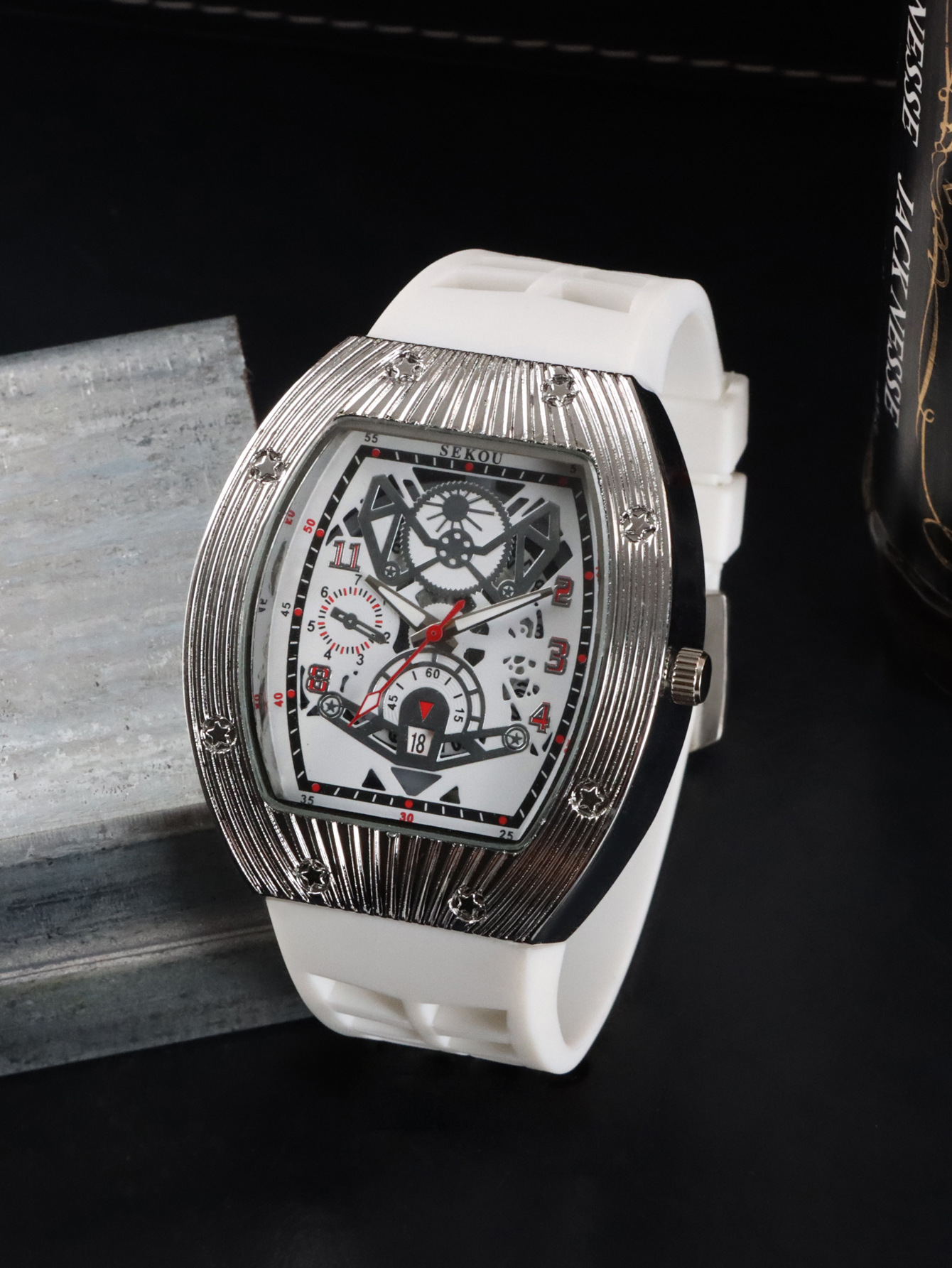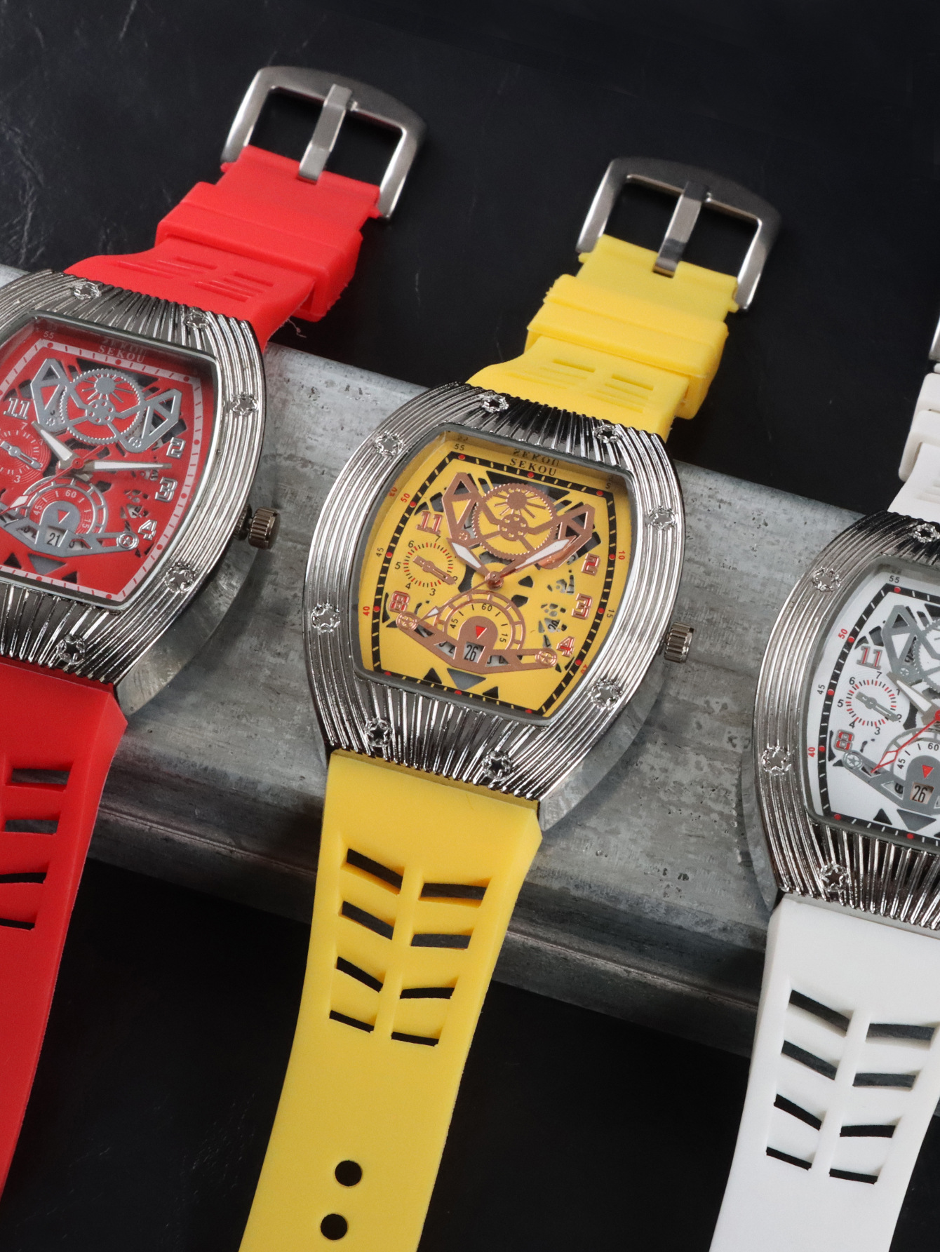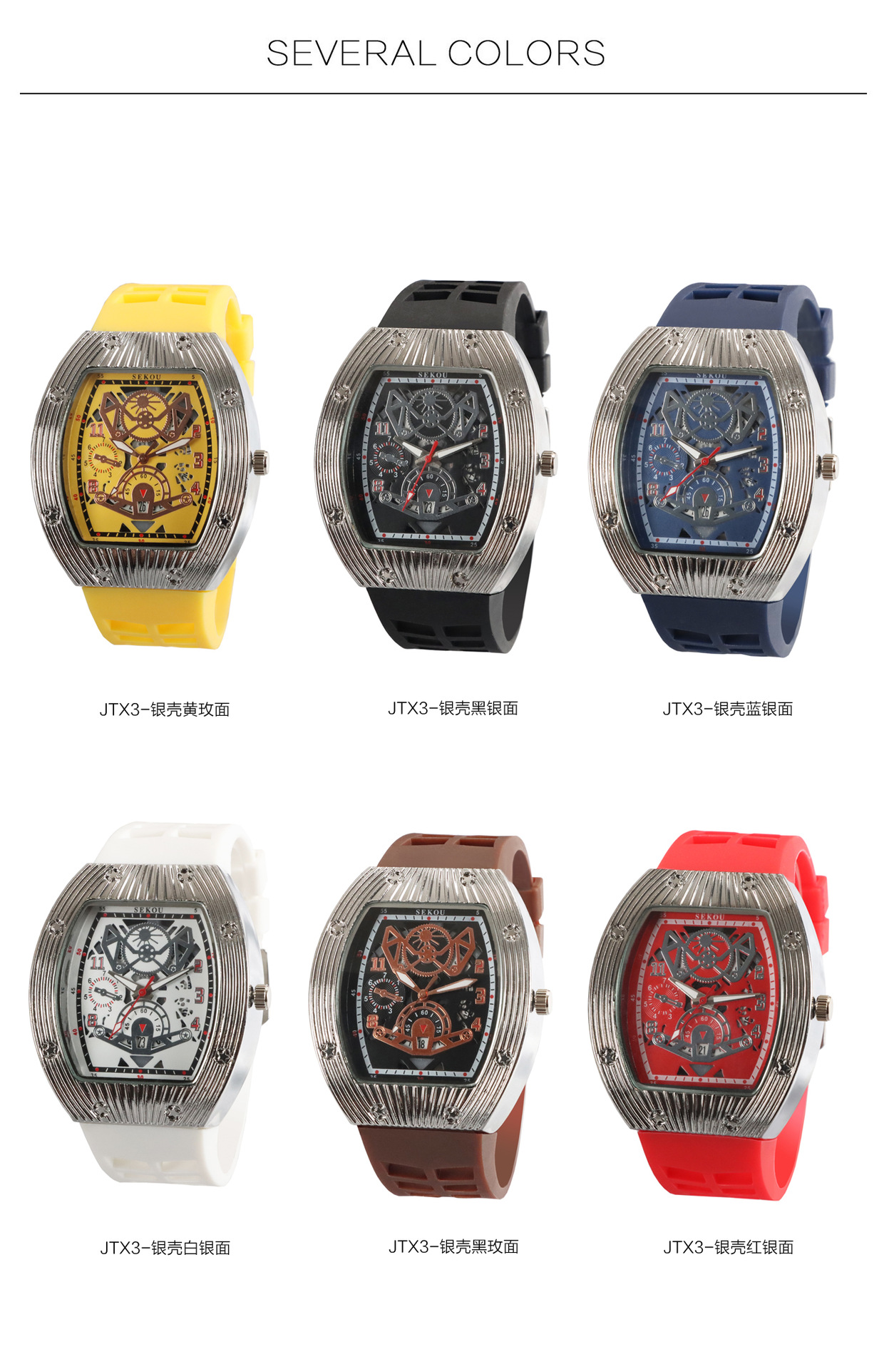 Cá tính hợp thời trang thời trang đồng hồ hình thùng thể thao nam phù hợp đồng hồ rỗng lịch dạ quang đồng hồ thạch anh JTX3
