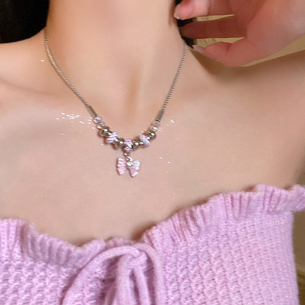 Cá Tính Mới Thời Trang Màu Hồng Tím Vòng Cổ Bướm Mùa Hè Ngọt Ngào Và Thoáng Mát Nữ Đính Hạt Zircon Cao Cấp Xương Đòn Dây Chuyền