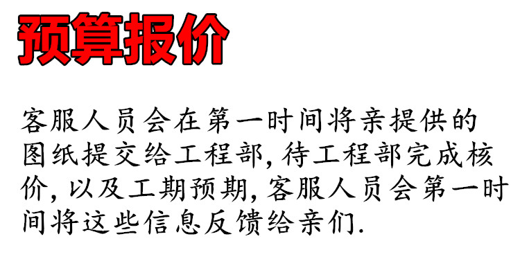 3、客户下单后,现货一般在24小时内发货,定做一般在72小时内发货。定做数量较多较复杂的可能72小时内不能发货,因为加工需要一个制作工期,如果较急的订单,需跟客服说明。