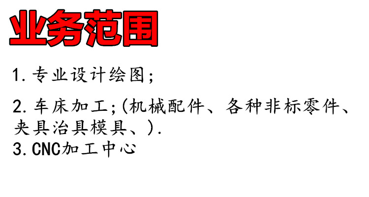 来图来样加工:精密机械加工、数控车床加工、CNC雕刻加工、电脑锣加工、激光雕刻加工、各种五金塑料产品加工、非标零件加工。