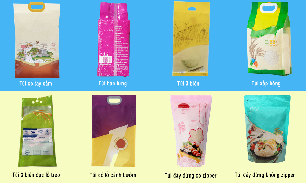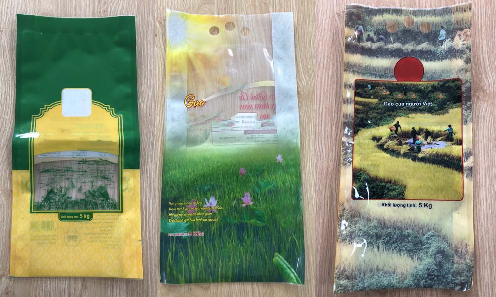 Bao bì đựng gạo màng ghép phức hợp thường được sử dụng để đựng gạo với quy cách 1kg, 2kg, 5kg. Đây là phương thức đóng gói phổ biến dành cho gạo xuất khẩu, cũng như các loại gạo cao cấp.