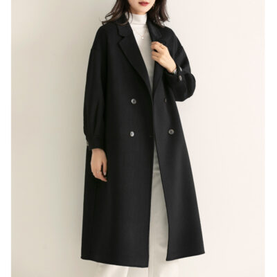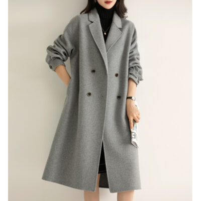 Các nhà sản xuất bán buôn áo khoác cashmere hai mặt chống mùa áo khoác len nữ dài trung bình 2023 thời trang mới của Hàn Quốc