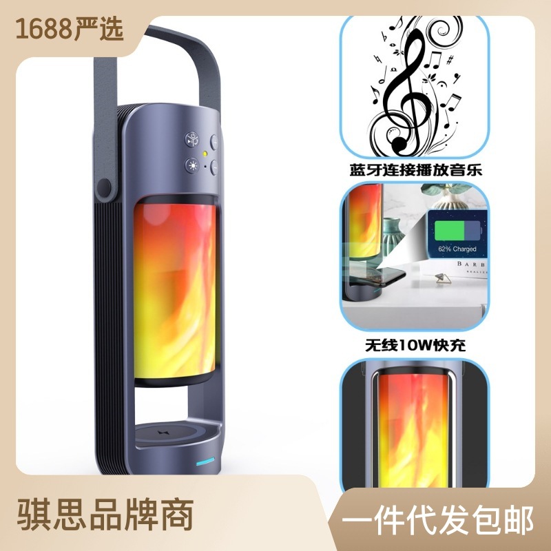 Các nhà sản xuất bán buôn đèn ngọn lửa sạc không dây loa bluetooth đa chức năng tích hợp đèn khẩn cấp ngoài trời với chức năng sạc kho báu