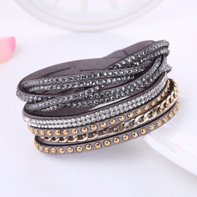 Các nhà sản xuất bán buôn vòng tay kim cương nóng nhiều lớp nhung Hàn Quốc thương mại nước ngoài vòng đeo tay nạm kim cương nhiều hàng sáng tạo dây đeo cổ tay