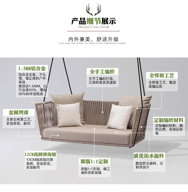 Các nhà sản xuất bán buôn xích đu ngoài trời ghế treo sân vườn vườn ban công mây treo giỏ ngoài trời đôi ghế bập bênh sắt nghệ thuật đu