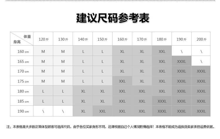 (注意:这只是推荐,请买家根据自身情况和衣服尺码表选码)(如果体重偏胖的买家,就买相对应的大一码或者大两码,有自己拿不准的可以咨询客服)偏胖的亲可以主要根据相对应的体重选码哦