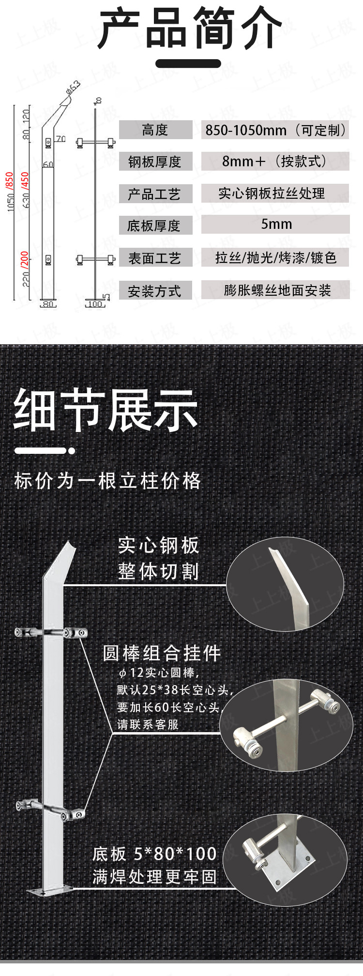 Các nhà sản xuất tùy chỉnh chải kỹ thuật bằng thép không gỉ rắn chắc dọc nhà cột cầu thang lan can kính lan can lan can ban công