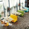 .Cafe ghế sofa gỗ giải trí bằng gỗ đặc tráng miệng quán trà sữa bàn ghế kết hợp văn phòng tiếp khách và đàm phán thẻ đôi