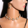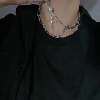 California Đường Phố Kim Loại Đá Chéo Vòng Cổ Ngọc Trai Cặp Đôi Nam Nữ Punk Vòng Cổ Xương Đòn Chuỗi Vòng Cổ Ngắn
