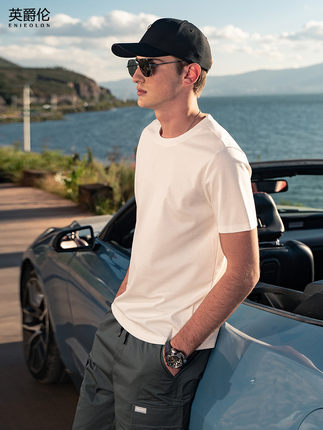 Cảm giác mát lạnh băng lụa cotton 2022 mùa hè mới của nam giới áo phông ngắn tay màu trắng quần áo nửa tay màu đồng nhất áo phông cotton đánh thuê