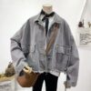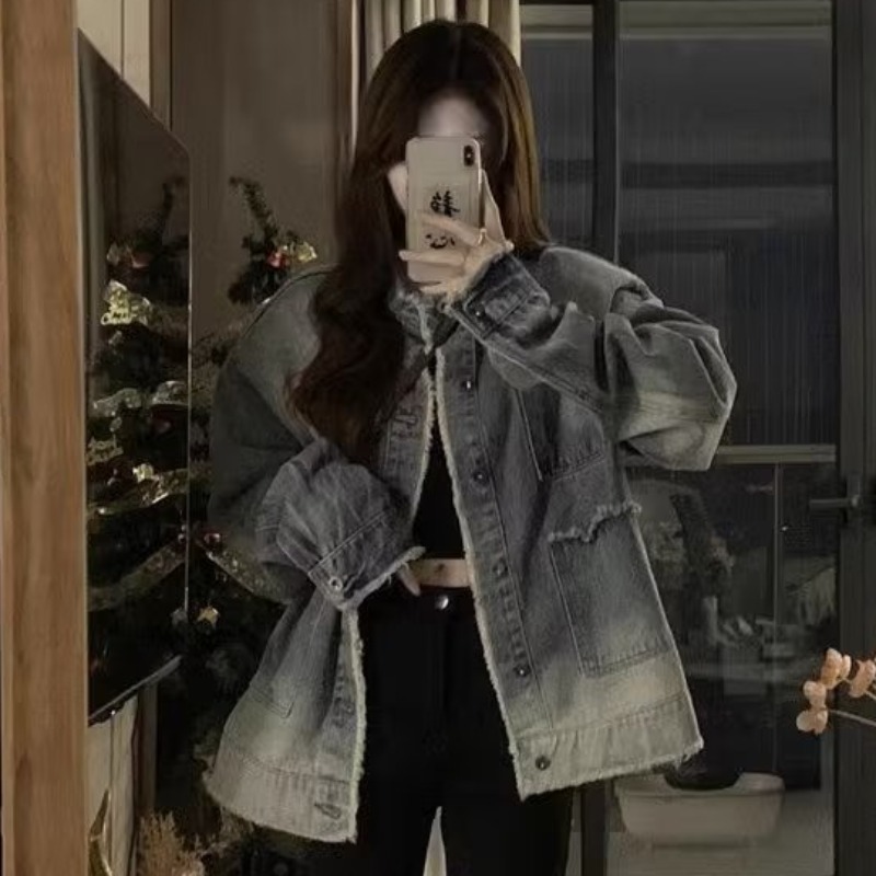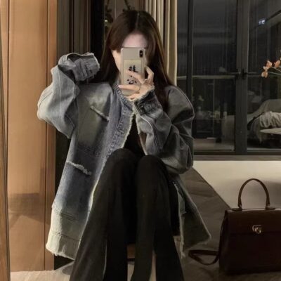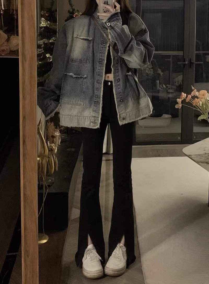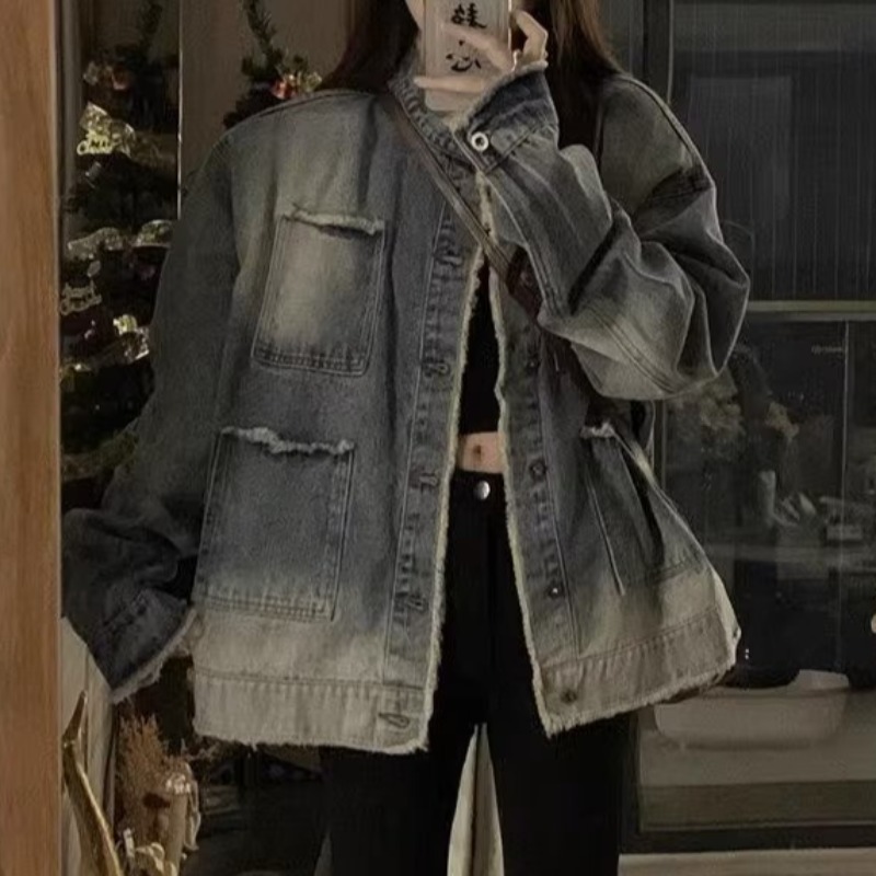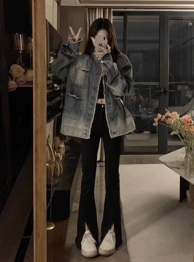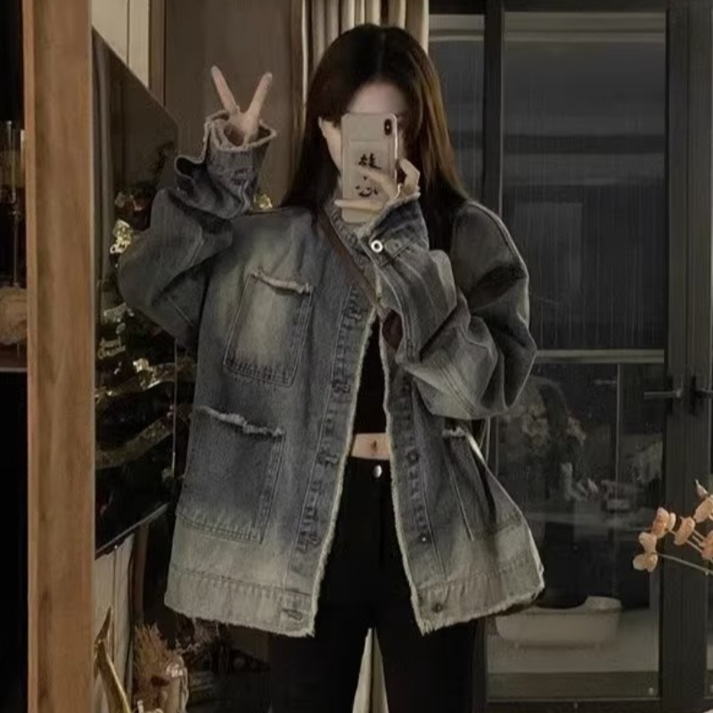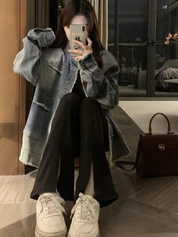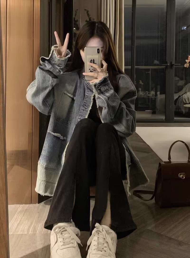 Cảm giác thiết kế chiên đường phố cổ điển gradient áo khoác denim nữ mùa xuân và mùa thu phù hợp với áo khoác gió bf nhỏ rộng rãi hàng đầu