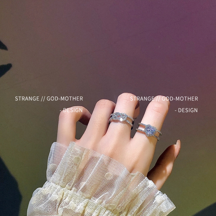 Cảm giác yêu nhẫn nữ ins thủy triều khí chất thiết kế nhỏ nhẫn đôi hình trái tim zircon rhinestone nhẫn ngón trỏ
