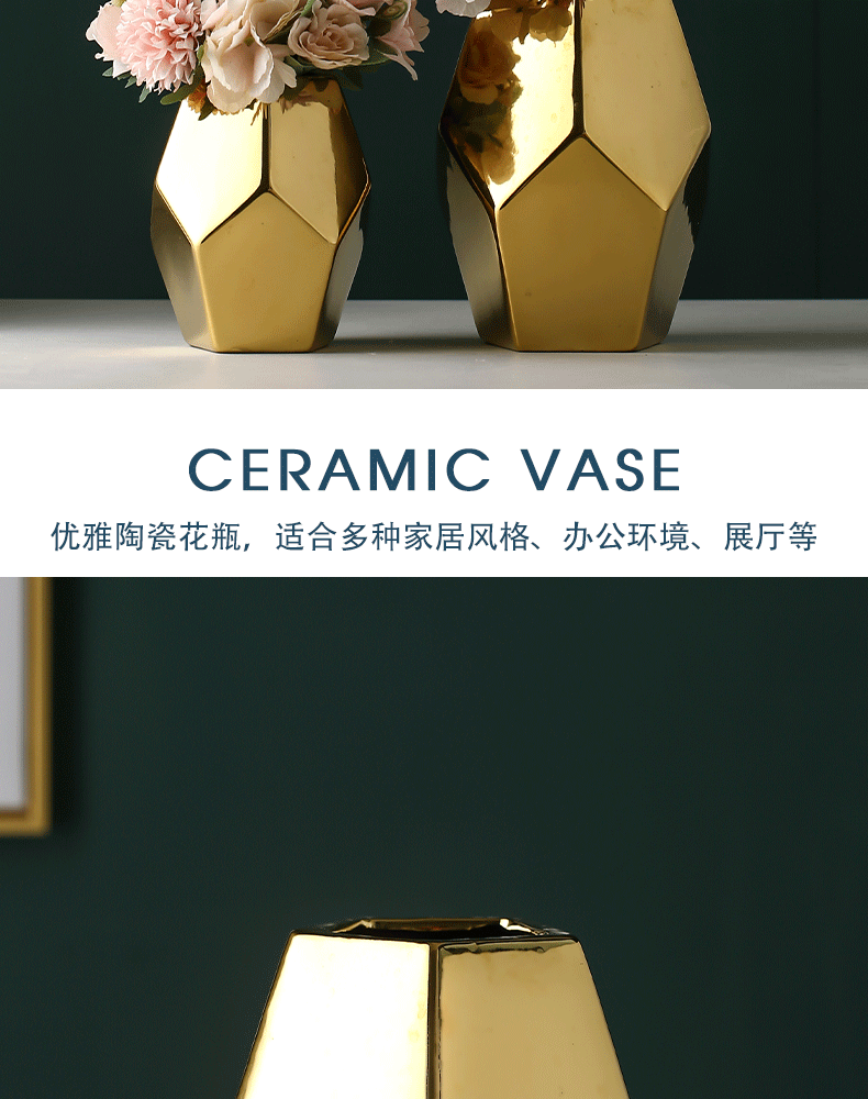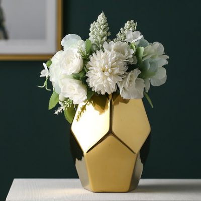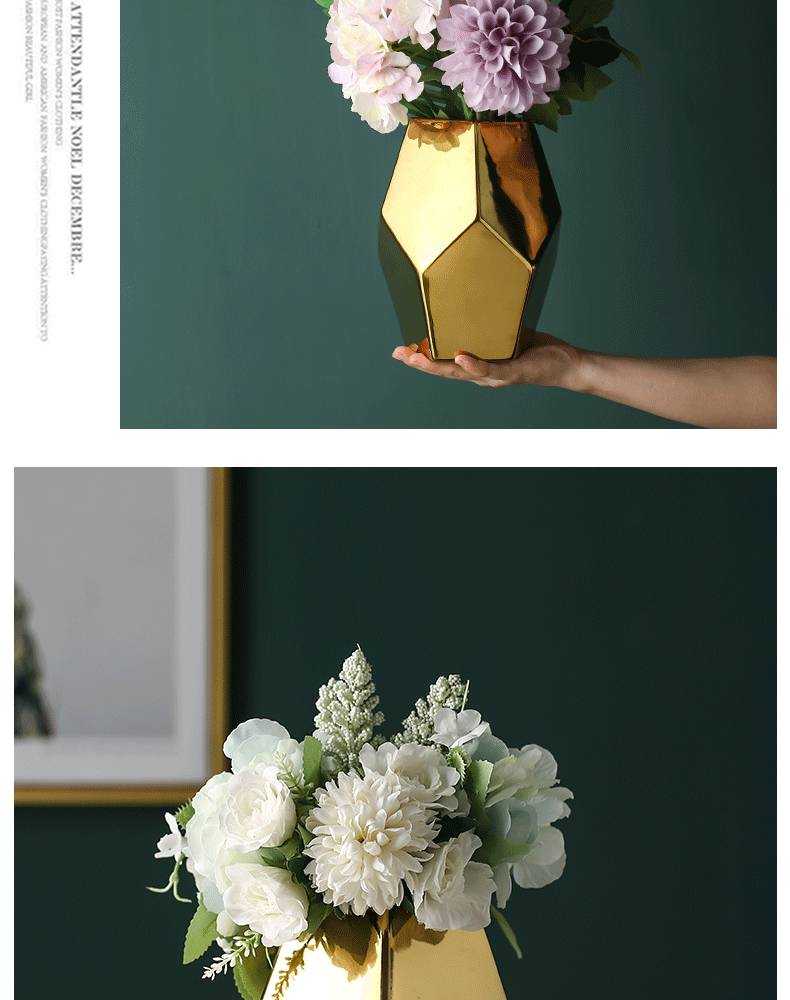 Cắm hoa phòng khách với trang trí gypsophila Hoa khô Bắc Âu Bình gốm vàng hiện đại tối giản sáng tạo trang trí nhà.