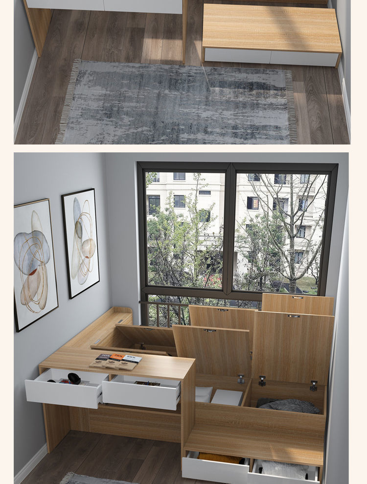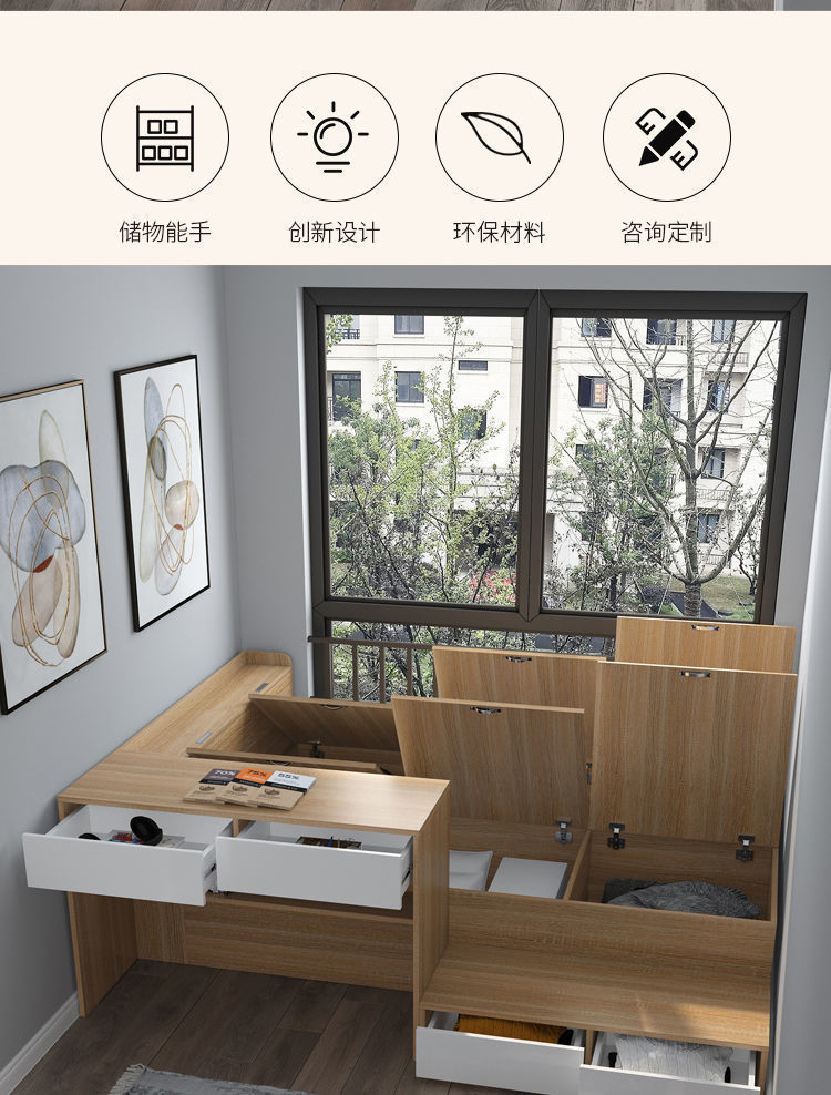 Căn hộ nhỏ đơn giản giường đơn tatami bàn làm việc tích hợp hộp cao cấp đa năng đựng đồ giường trẻ em kết hợp tủ