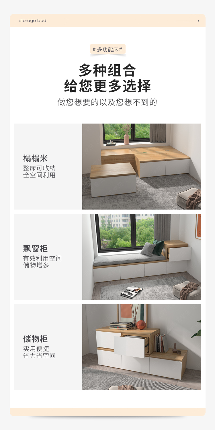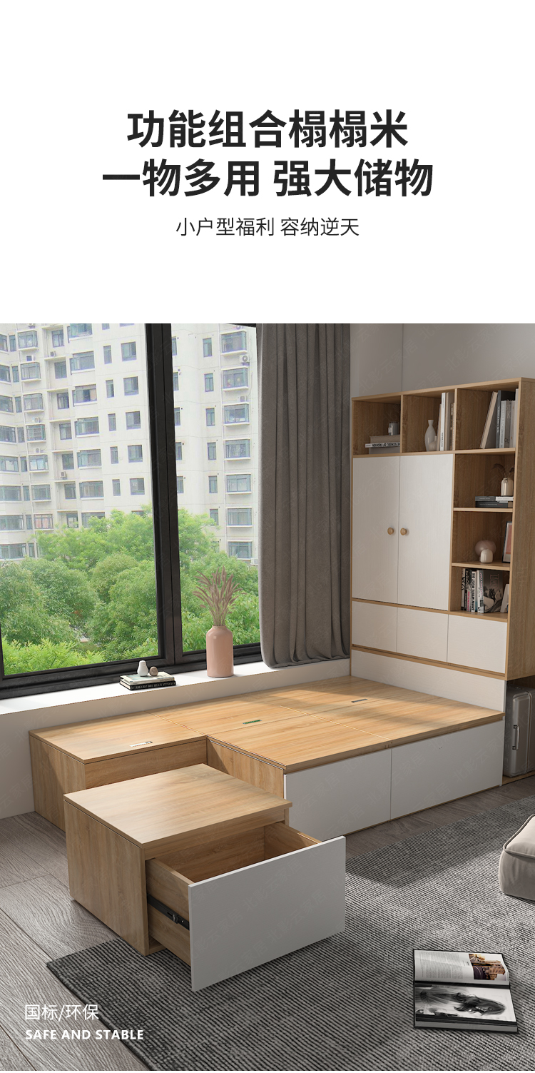 Căn hộ nhỏ giường tatami 1,5 mét kết hợp hộp lưu trữ hộp lưu trữ đồ nội thất phòng ngủ tiết kiệm không gian Khối lập phương Rubik có thể được tùy chỉnh