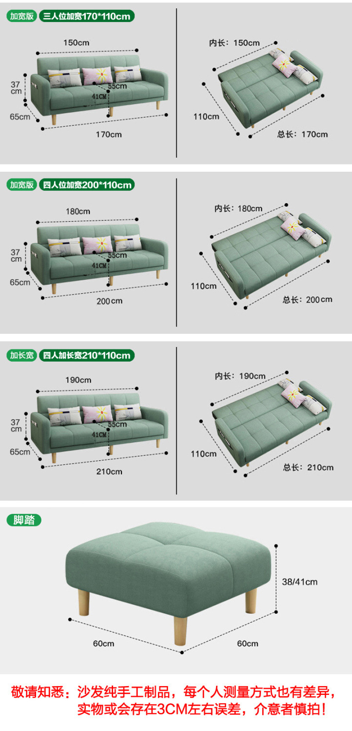 Căn hộ nhỏ hiện đại giường sofa gấp đa chức năng căn hộ đôi phòng khách cho thuê phòng sofa vải cao su không cần giặt