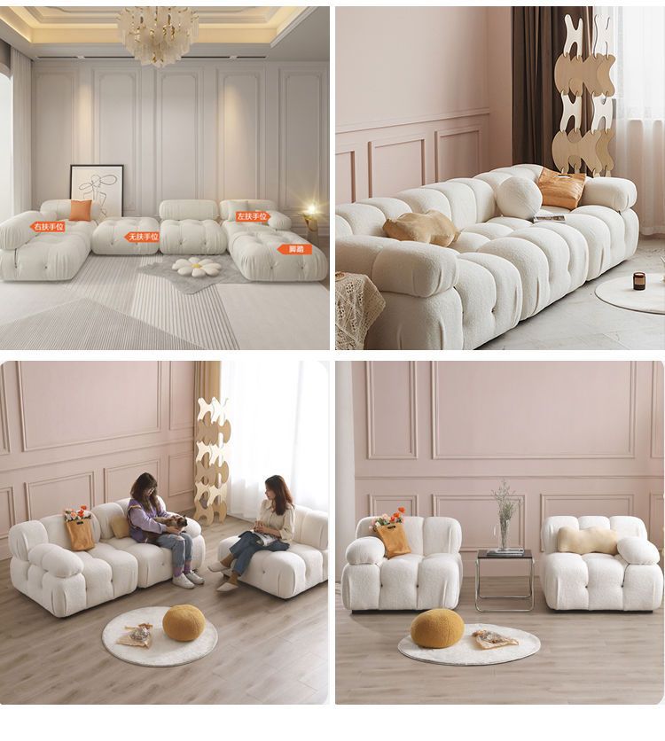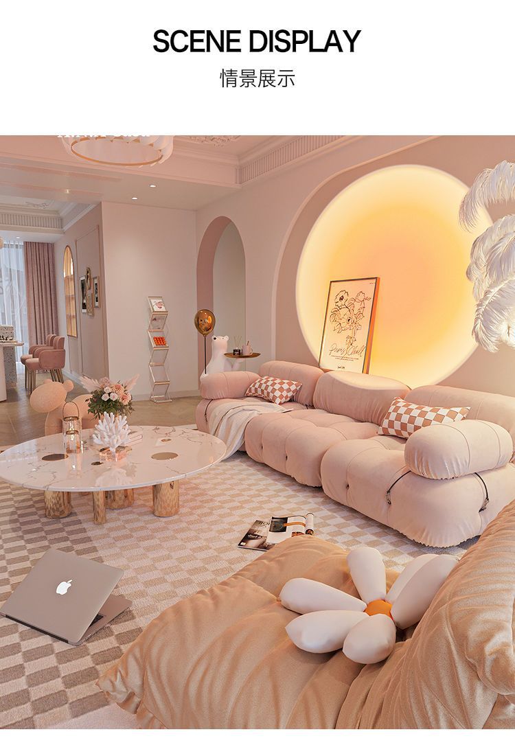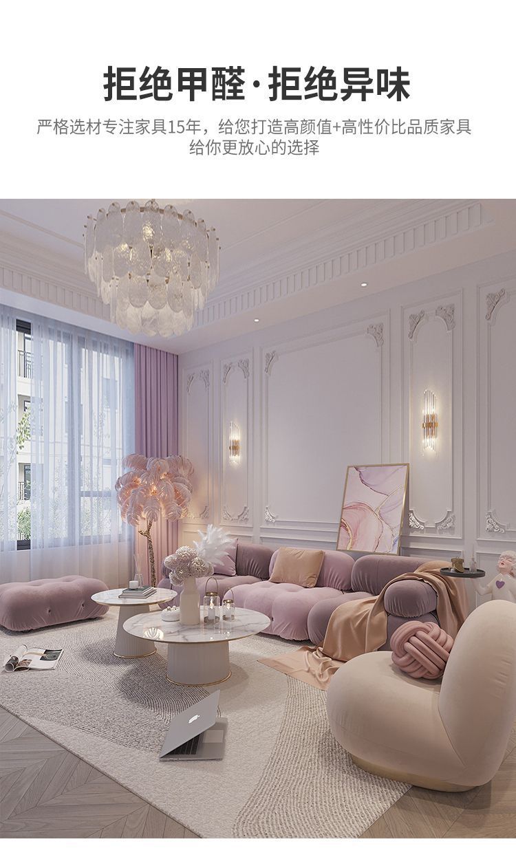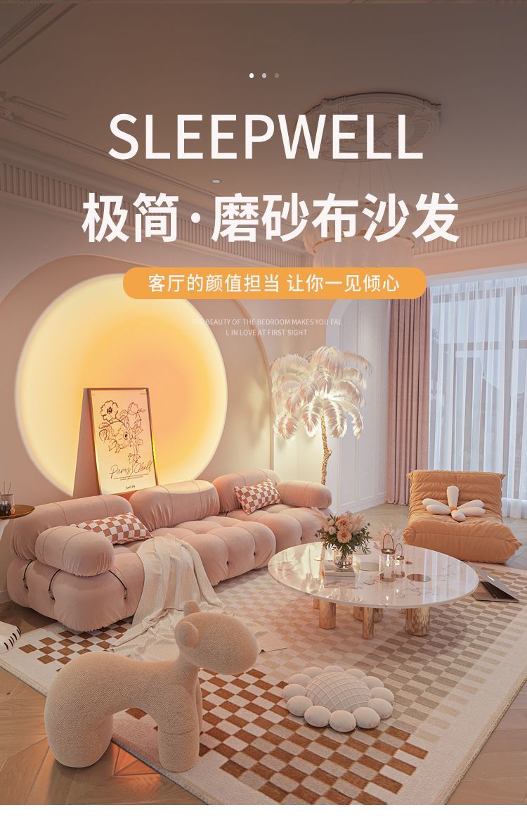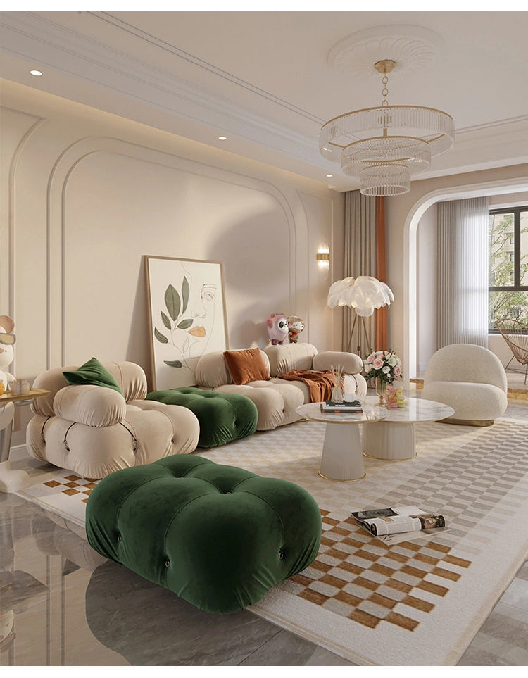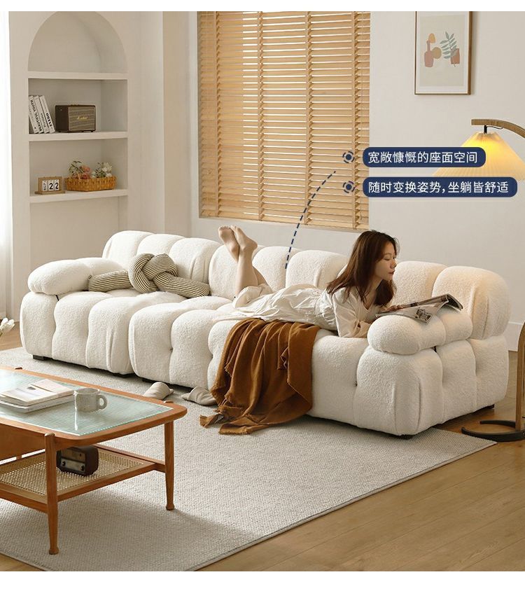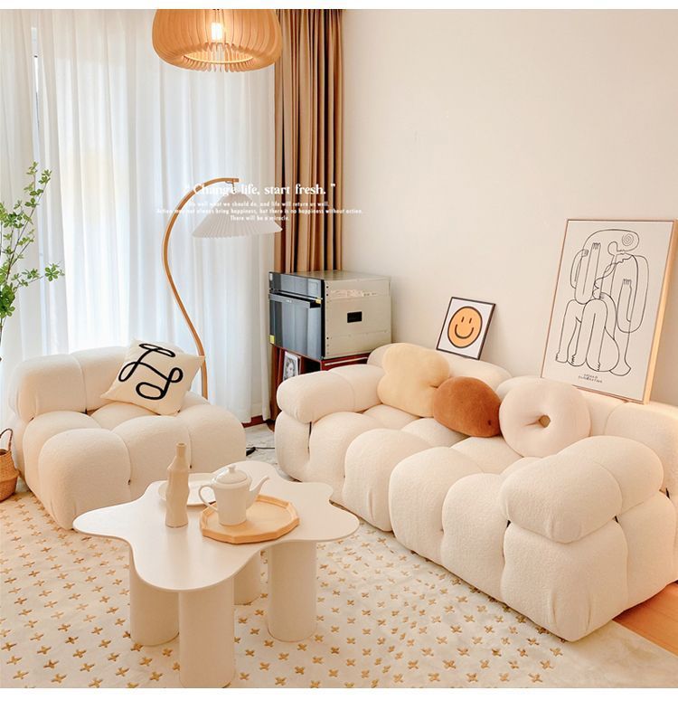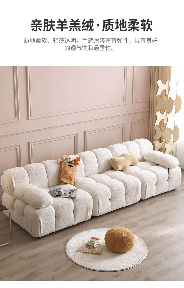 Căn hộ nhỏ phong cách kem wabi-sabi sofa tai voi ba người internet phòng khách người nổi tiếng bốn người đơn giản hiện đại
