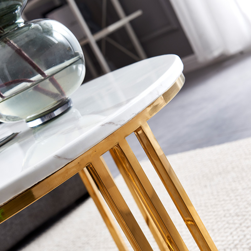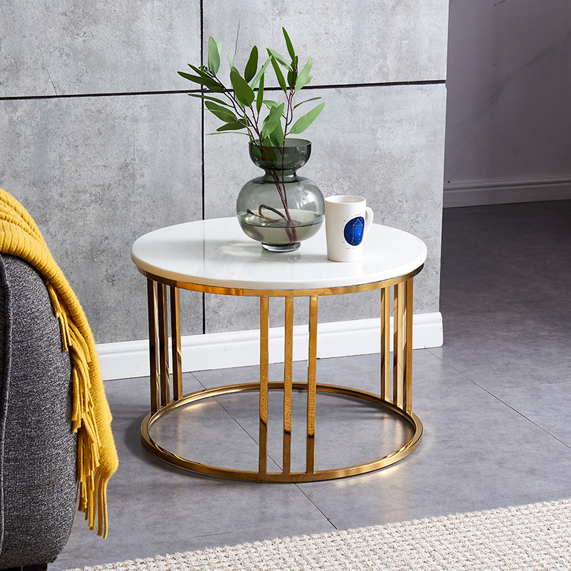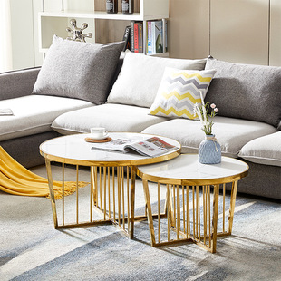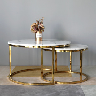 Căn hộ nhỏ phòng khách bàn cà phê Bắc Âu thép không gỉ kích thước bàn cà phê tròn kết hợp bàn cà phê đá cẩm thạch bên bàn