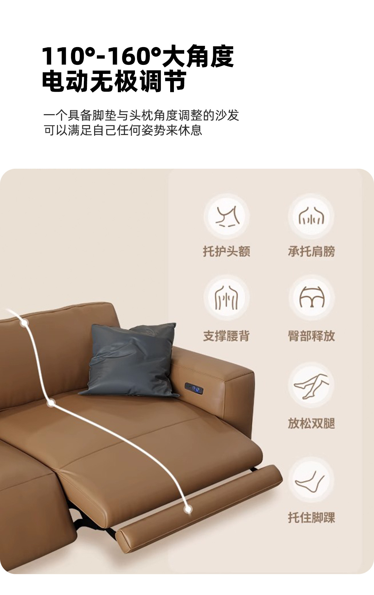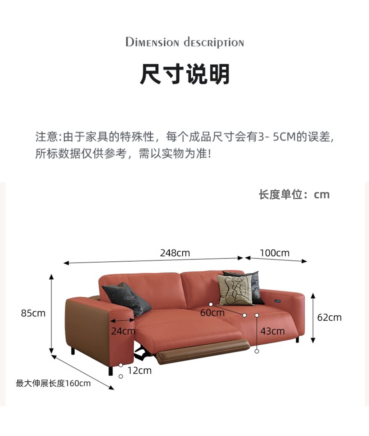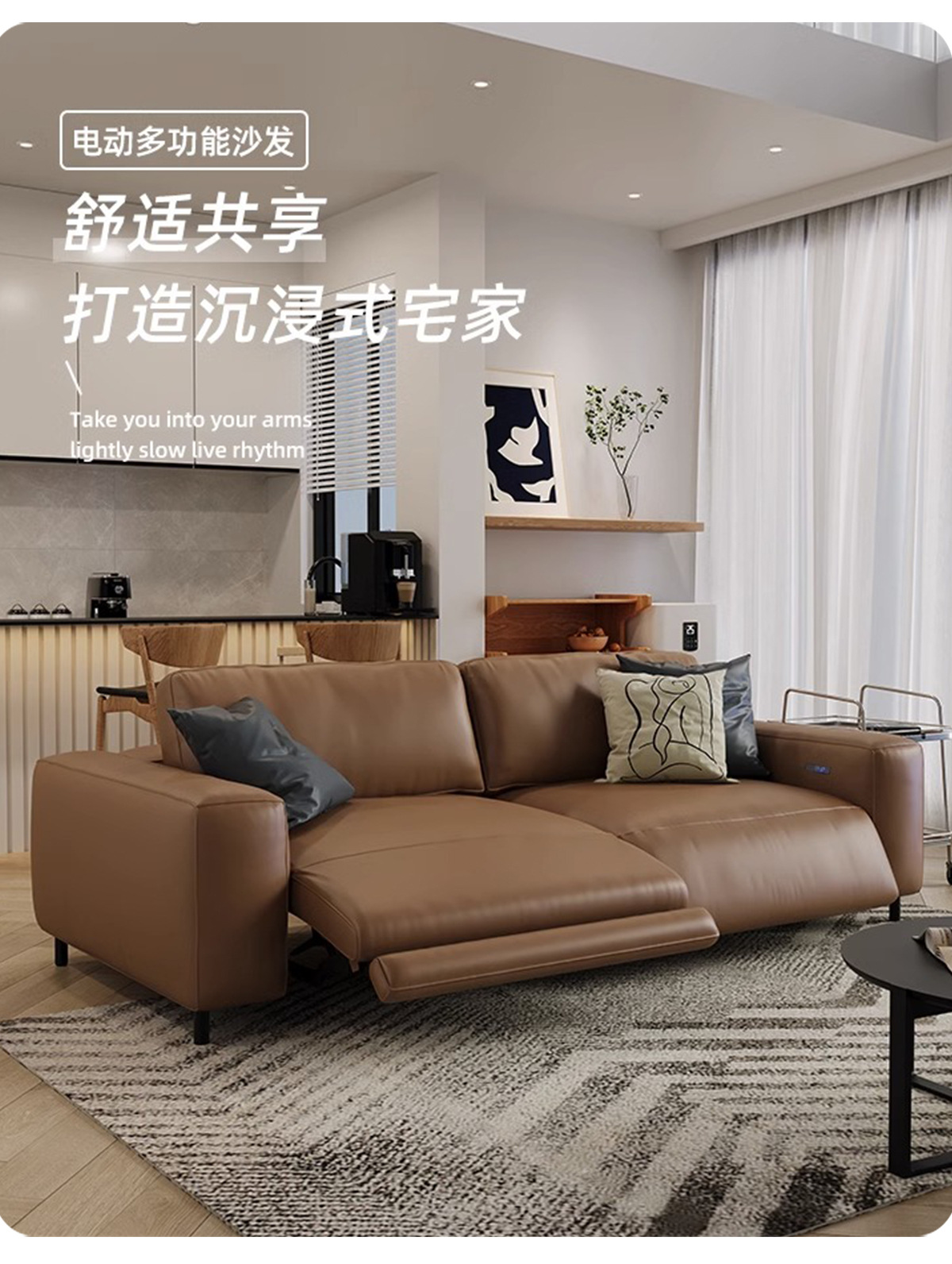 Căn hộ nhỏ sofa đôi bọc da điện phòng khách có thể điều chỉnh ghế sofa có chức năng ngả một nửa bằng kính thiên văn Ghế sofa hàng thẳng của Ý