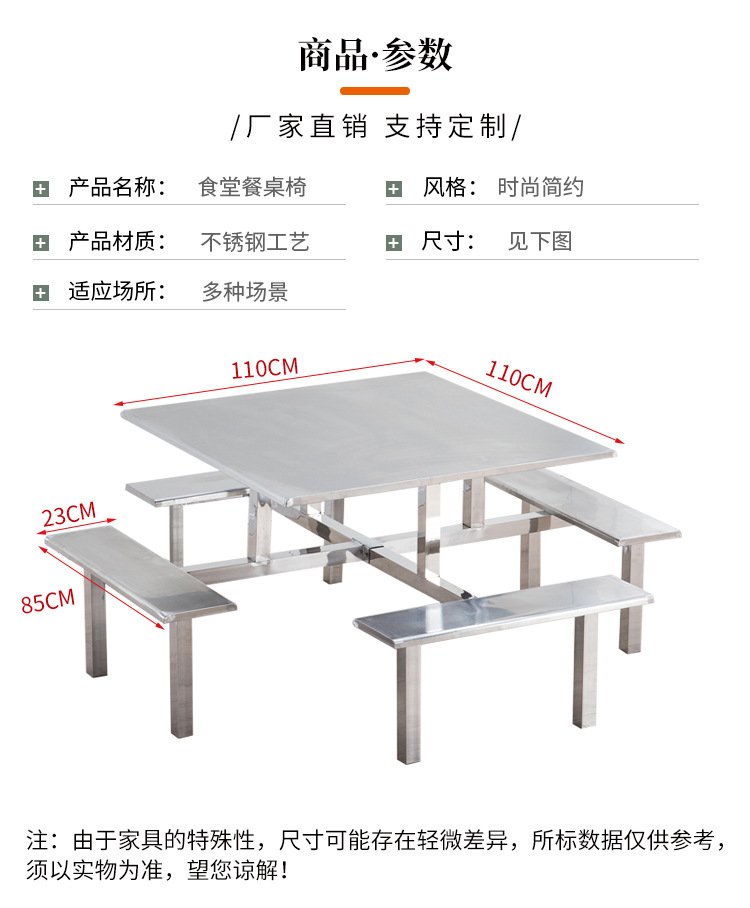 Căng tin trường học bàn ghế ăn inox 4 người 6 người 8 người nhân viên căng tin nhà hàng nhà máy kính liền bàn ăn inox – Bàn ăn nhập khẩu cao cấp