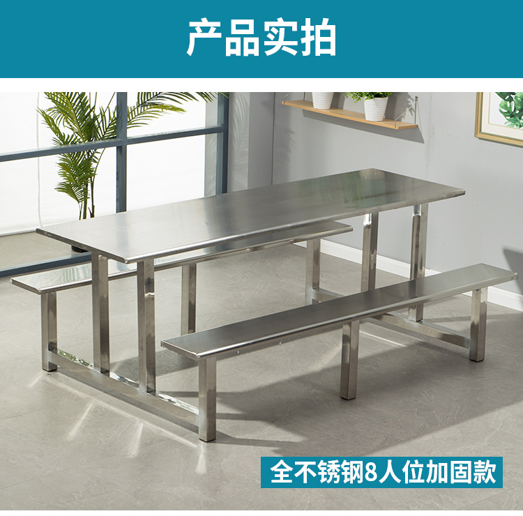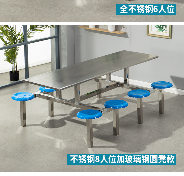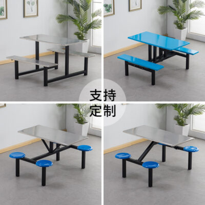 Căng tin trường học bàn ghế ăn inox 4 người 6 người 8 người nhân viên căng tin nhà hàng nhà máy kính liền bàn ăn inox