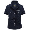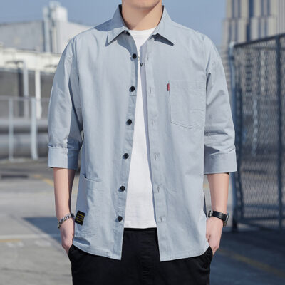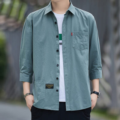 Cao cấp 100% cotton dáng rộng mùa hè ba phần tư áo sơ mi nam công cụ giản dị áo sơ mi ngắn tay giữa áo khoác