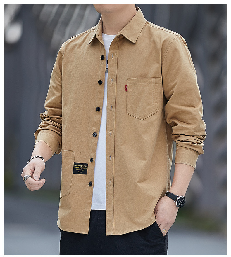 Cao cấp 100% cotton dáng rộng mùa hè ba phần tư áo sơ mi nam công cụ giản dị áo sơ mi ngắn tay giữa áo khoác