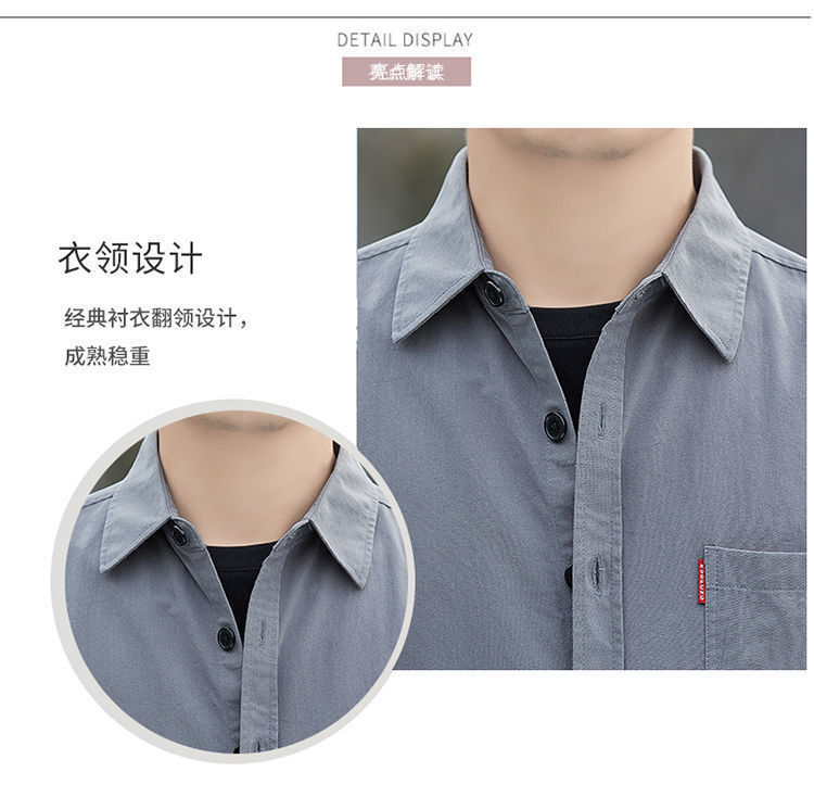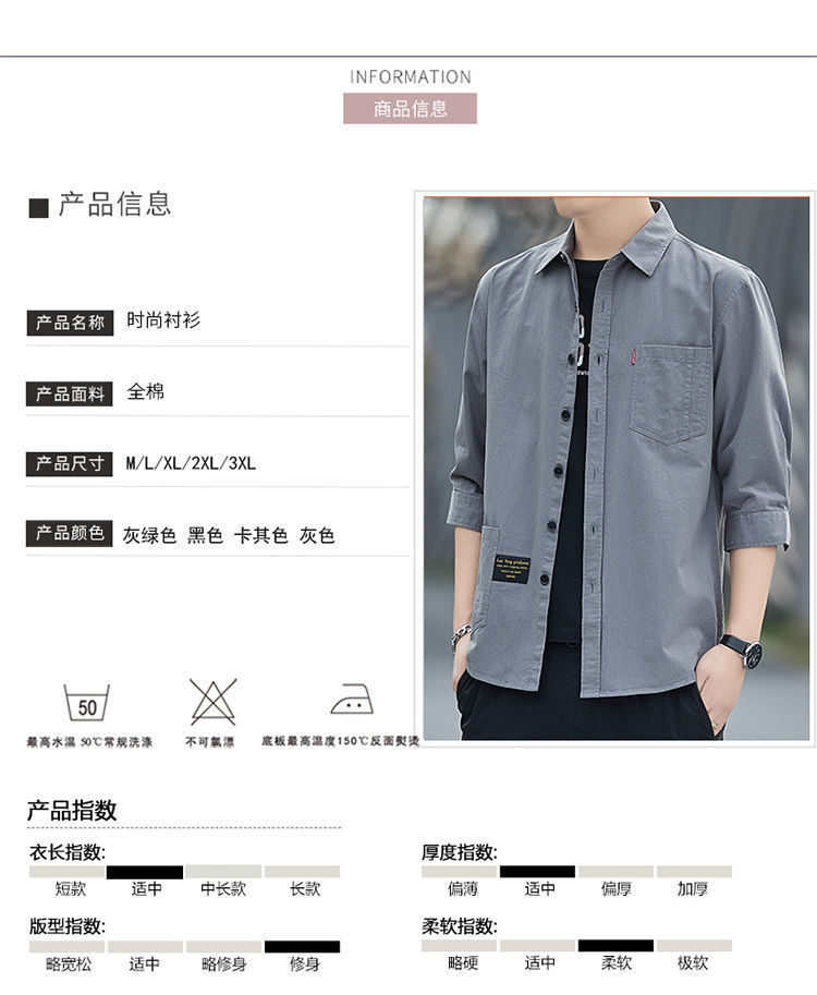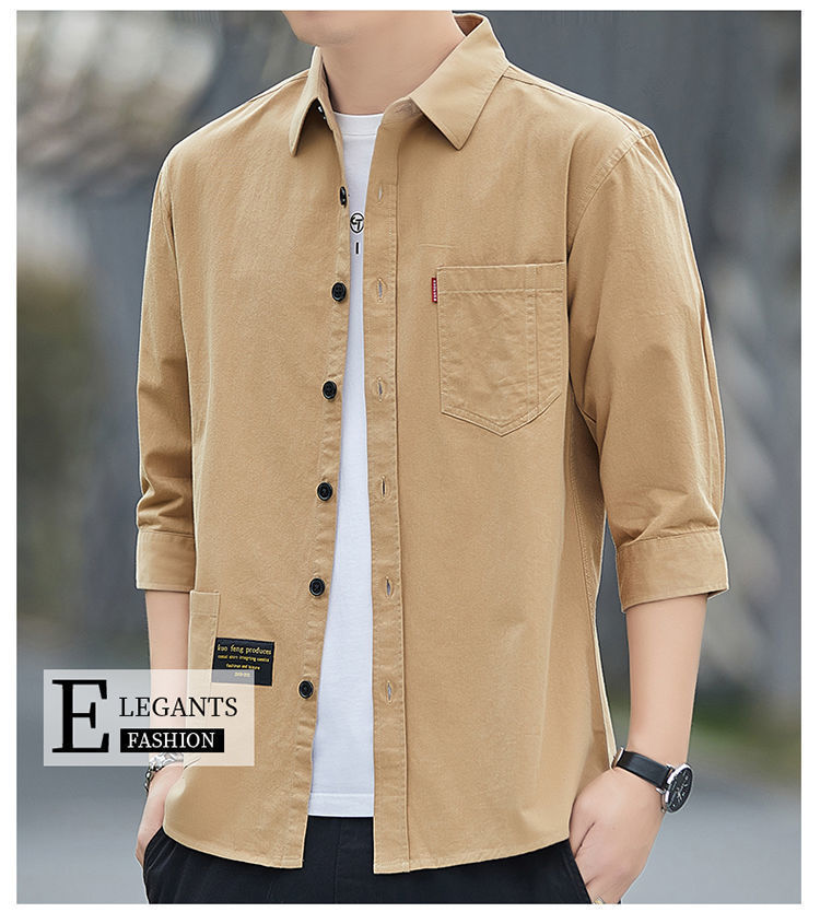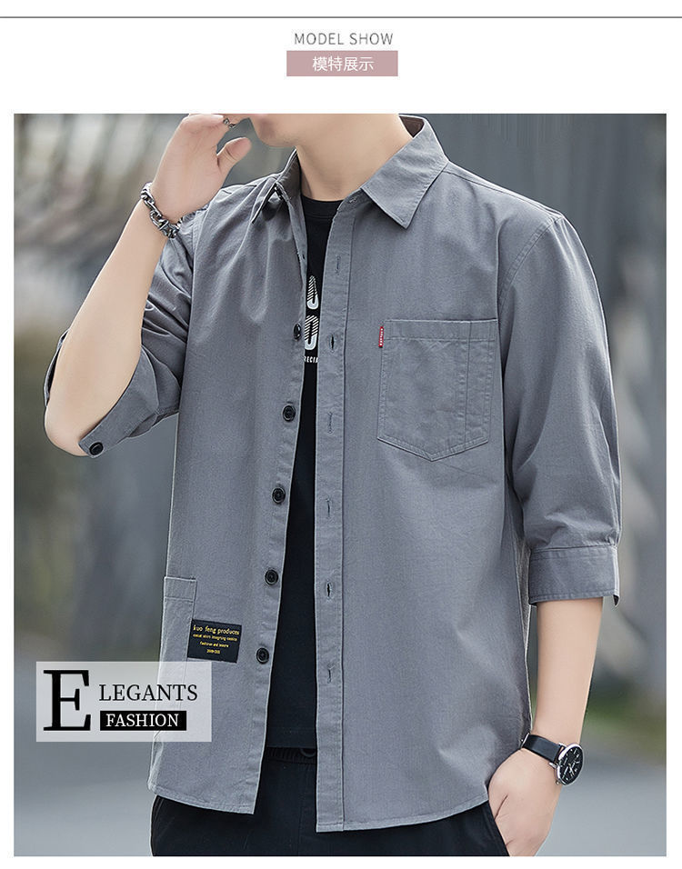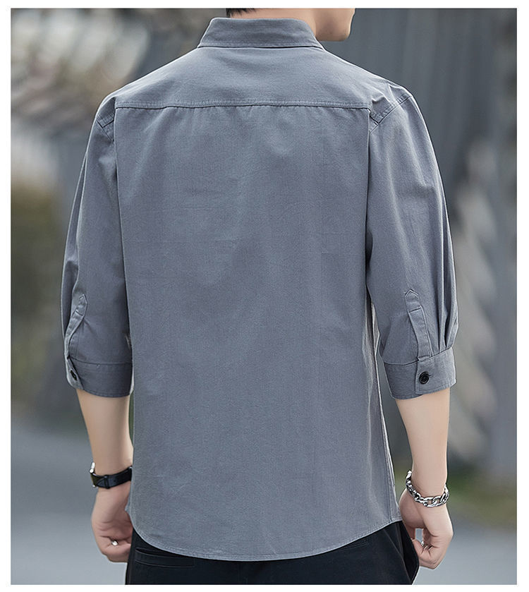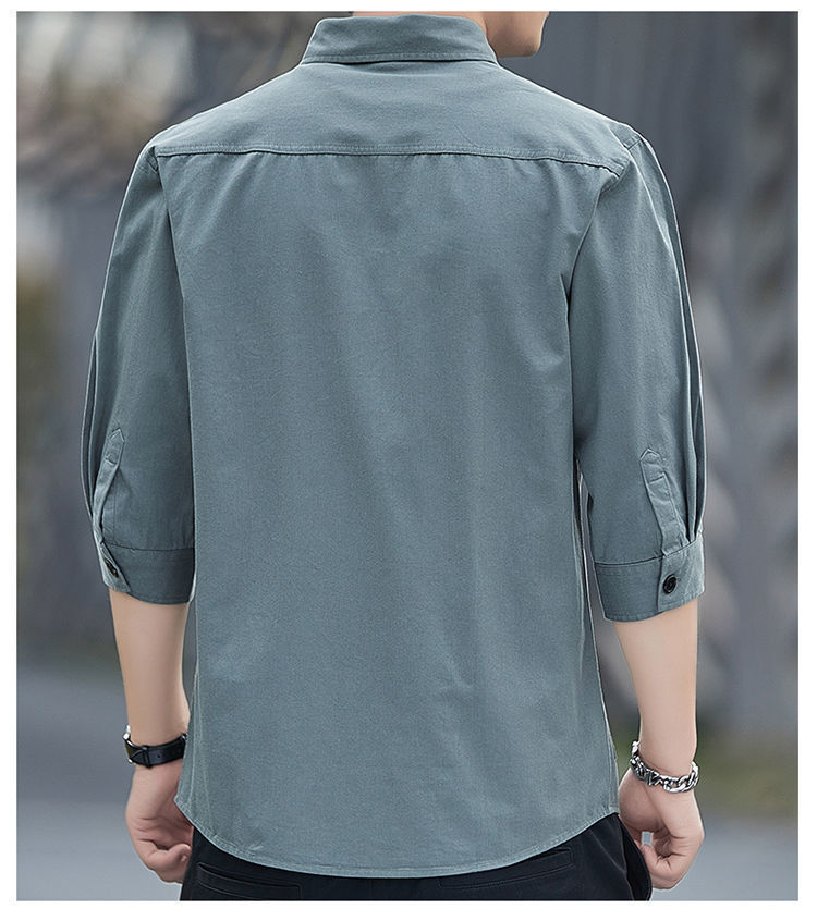 Cao cấp cotton thoải mái không cần ủi áo sơ mi ngắn tay mùa hè nam dáng rộng ba phần tư áo sơ mi dụng cụ giữa tay áo khoác