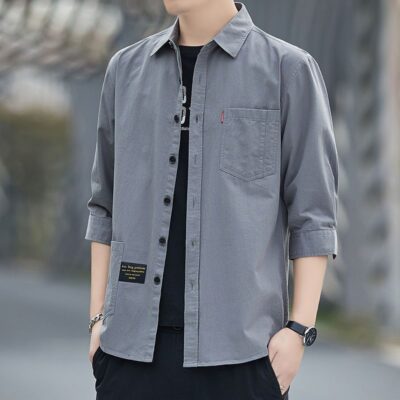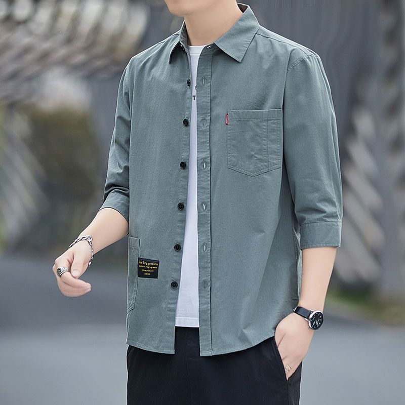 Cao cấp cotton thoải mái không cần ủi áo sơ mi ngắn tay mùa hè nam dáng rộng ba phần tư áo sơ mi dụng cụ giữa tay áo khoác