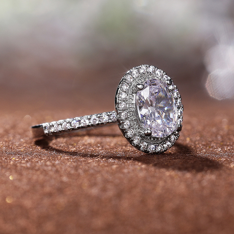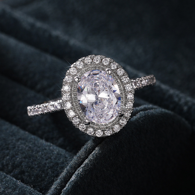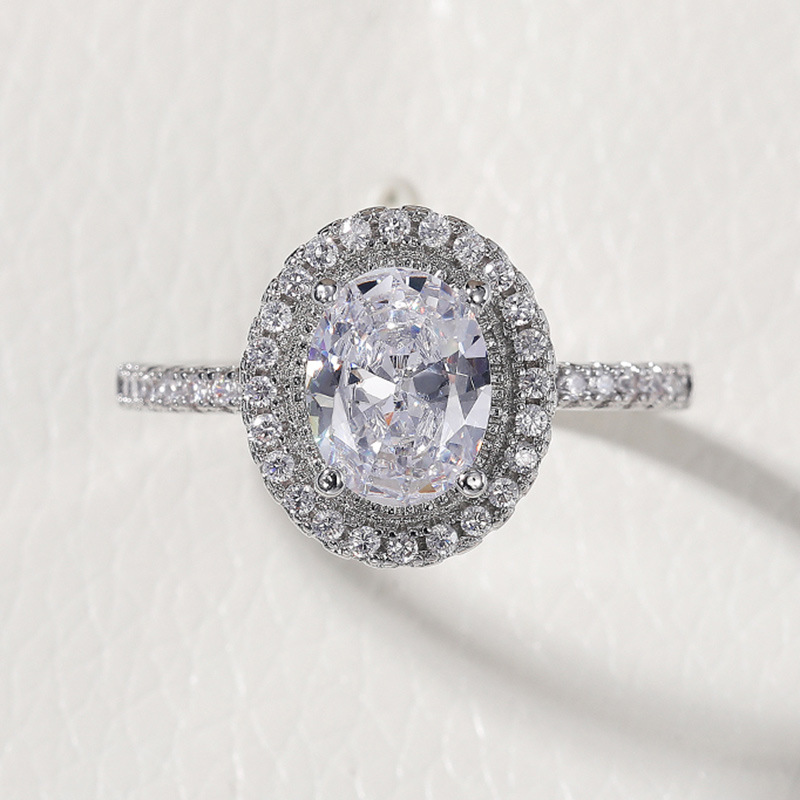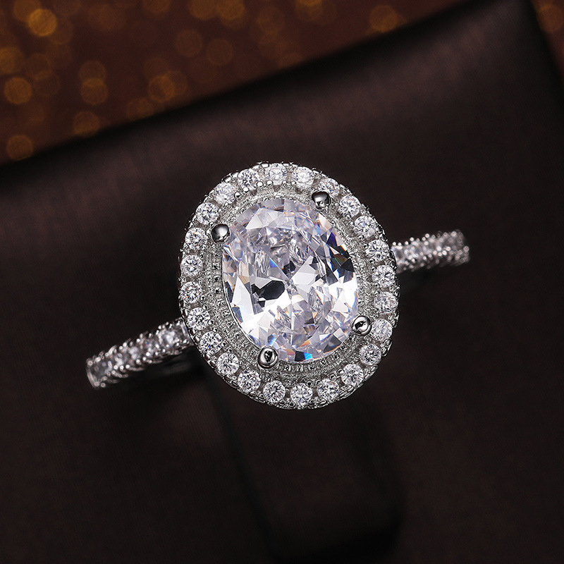Cao Shi xuyên biên giới dành riêng cho nhẫn đính hôn zircon hình bầu dục hình trứng mới dát nữ trang sức cưới cô dâu tiệc tối