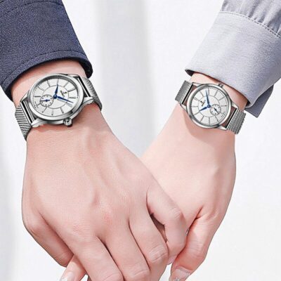 Cặp Đôi Đồng Hồ Thạch Anh Mỏng Thời Trang Mặt Số Nhỏ Rung Nổ Thép Không Gỉ Nam Nữ Phong Cách Châu Âu