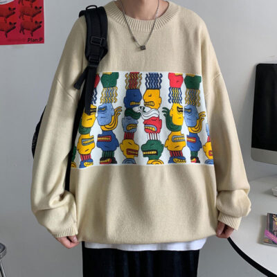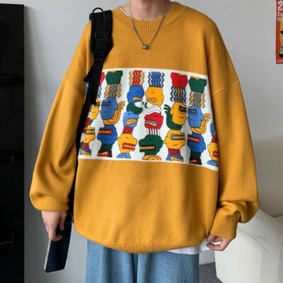 Cặp đôi hàng dệt kim nam mùa thu đông quốc triều mới thương hiệu ins áo len cổ tròn nam đen đáy quần áo