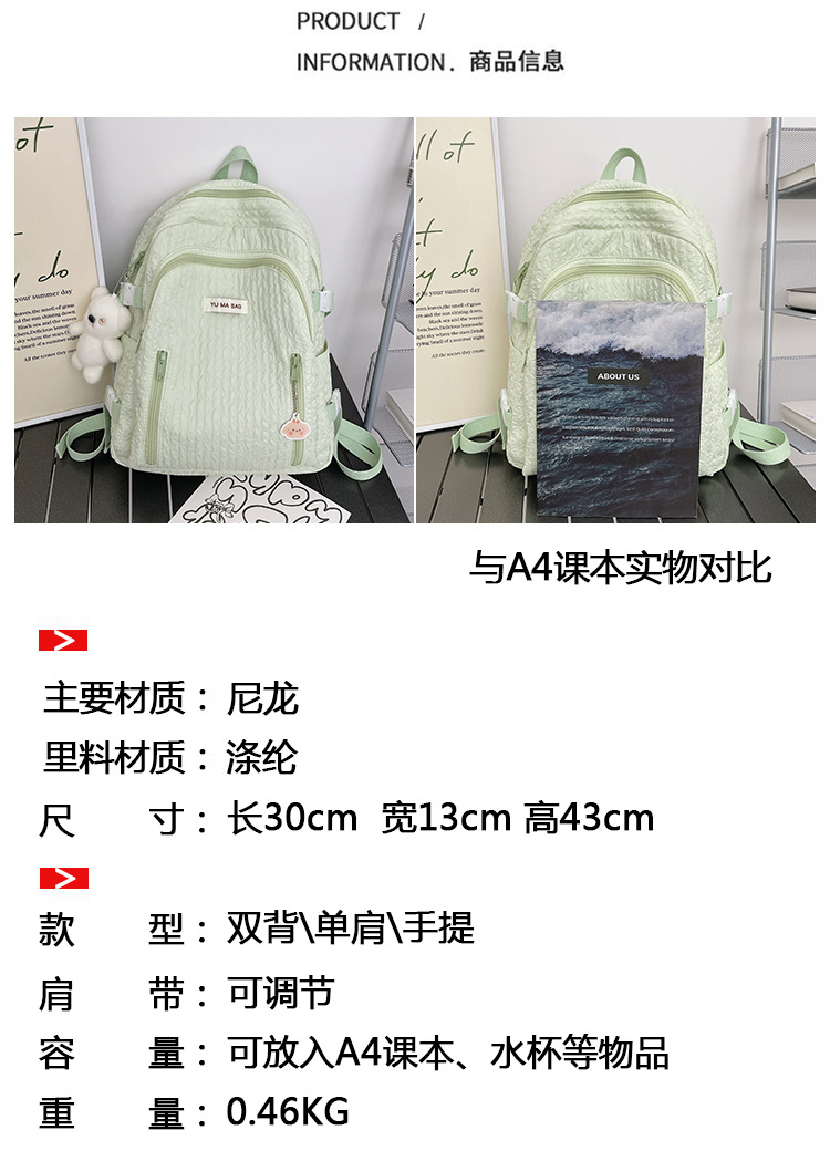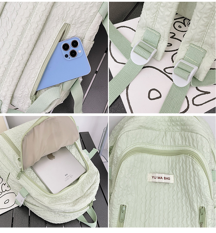 Kích thước máy tính: 14 inch Hoa văn: Màu trơn Kết cấu lớp lót: Polyester Mã sản phẩm: 610 Cảnh áp dụng: Trường học Giáo dục Màu sắc: Xanh lá/Hồng/Đen/Trắng/Xanh lam/Vàng/Vàng Thương hiệu riêng được ủy quyền: Không Áp dụng Giới tính: Nữ Mùa niêm yết : Mùa xuân 2023 Chức năng: Chống thấm nước Kích thước: Túi đơn/Túi có mặt dây chuyền/Túi có mặt dây chuyền Chất liệu: Nylon Hệ thống quai xách: Dây đeo có đệm khí Các yếu tố phổ biến: Đường may Phong cách: Tươi mát Thời gian giao hàng mới nhất: 3 Dung tích: 20-35L Ngưỡng phân phối nhượng quyền: 0
