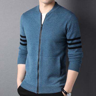 Cardigan dệt kim áo len nam áo khoác sọc dây kéo cổ bóng chày xuân thu 2023 xu hướng thời trang nam thời trang giản dị mới
