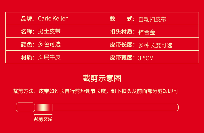 CarleKellen thắt lưng nam da không răng khóa tự động kinh doanh thường thắt lưng nam thắt lưng cao cấp chính hãng