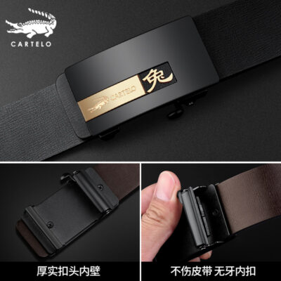 Cartelo Dây Da Cá Sấu Nam Da Bò Không Răng Khóa Tự Động Mười Hai Cung Hoàng Đạo Quần Thắt Lưng Nam Mới 2023