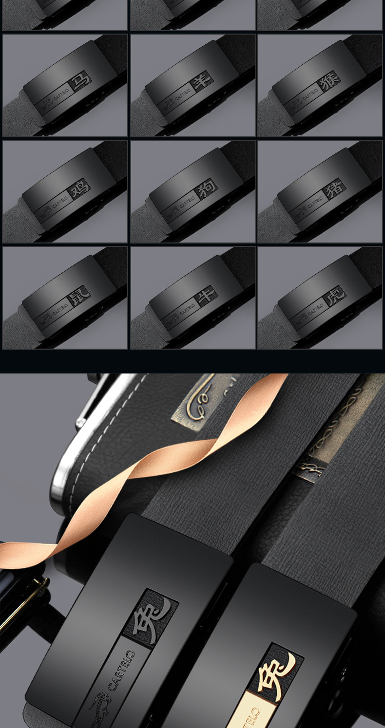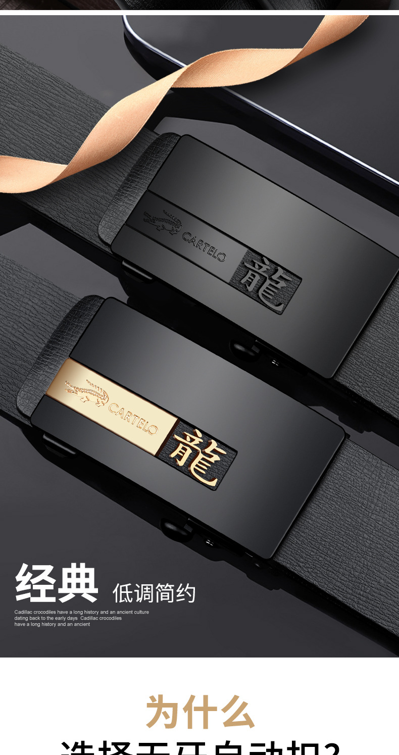 Cartelo Dây Da Cá Sấu Nam Da Bò Không Răng Khóa Tự Động Mười Hai Cung Hoàng Đạo Quần Thắt Lưng Nam Mới 2023