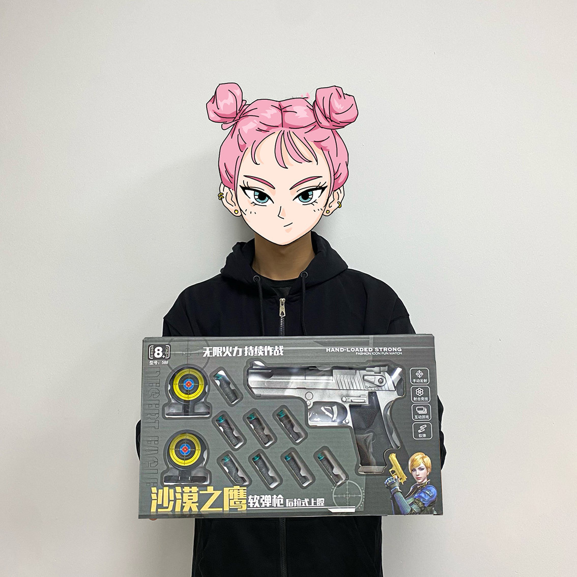 Cậu bé mô hình súng đồ chơi Desert Eagle đạn mềm rồi kéo khẩu súng đã lên đạn để lập lễ kết nạp gánh hàng rong