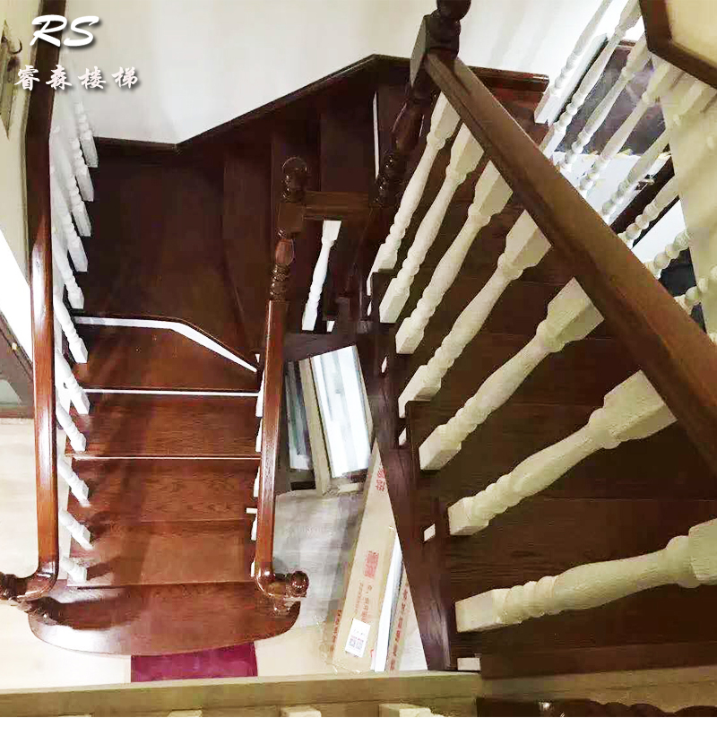 Cầu thang gỗ chắc chắn lắp đặt tùy chỉnh tổng thể Sàn gỗ song song Cầu thang gỗ sàn nhảy tầng gác mái nhà máy bán hàng trực tiếp lan can bàn đạp hàng rào