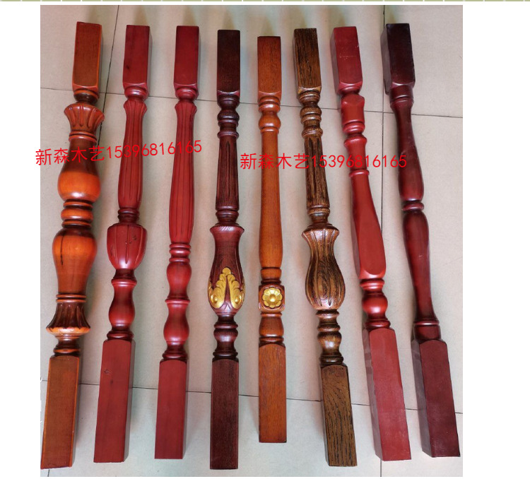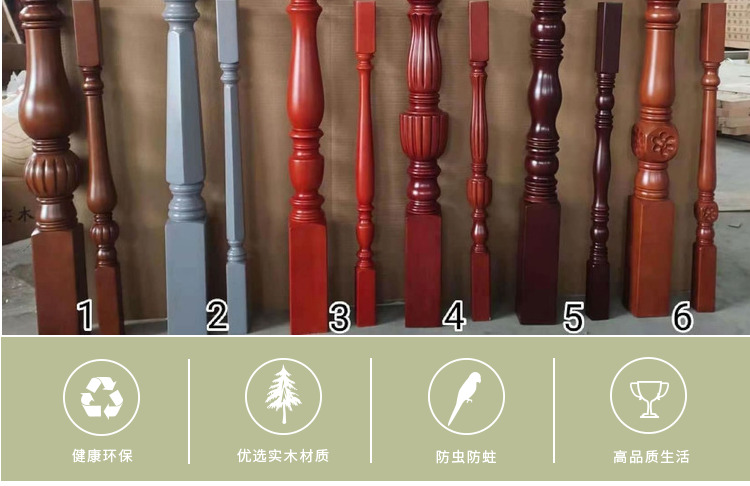 Cầu thang gỗ vững chắc lan can cột ban công cửa sổ bay lan can biệt thự lan can màu trắng phôi gỗ sồi gia dụng lan can bằng gỗ sồi sơn tùy chỉnh