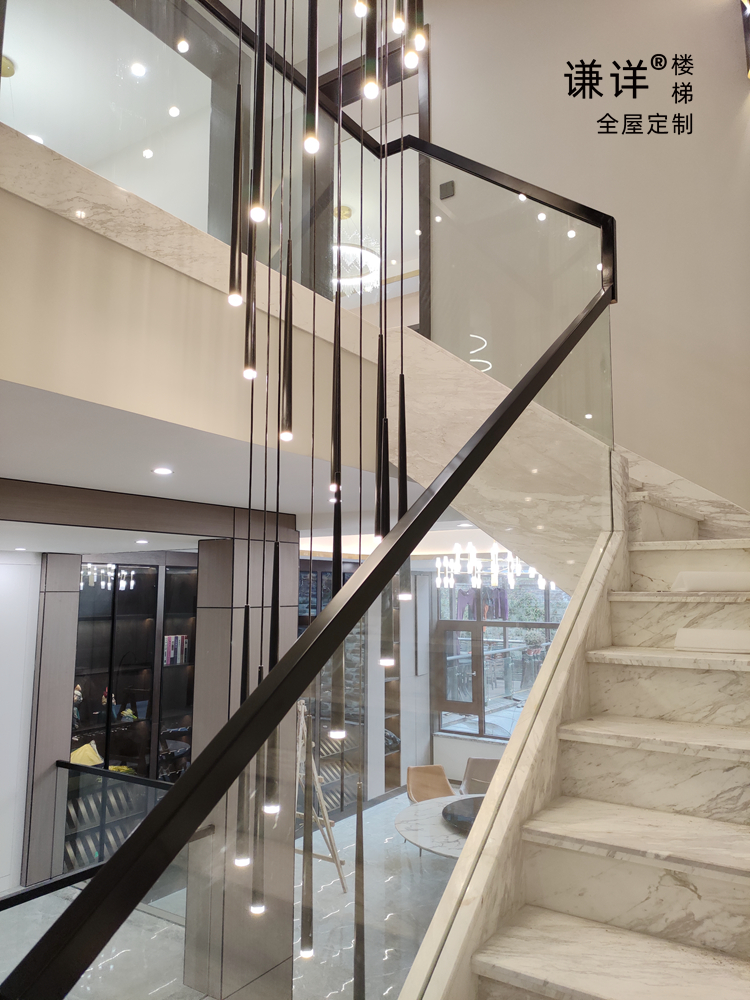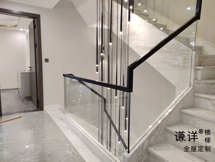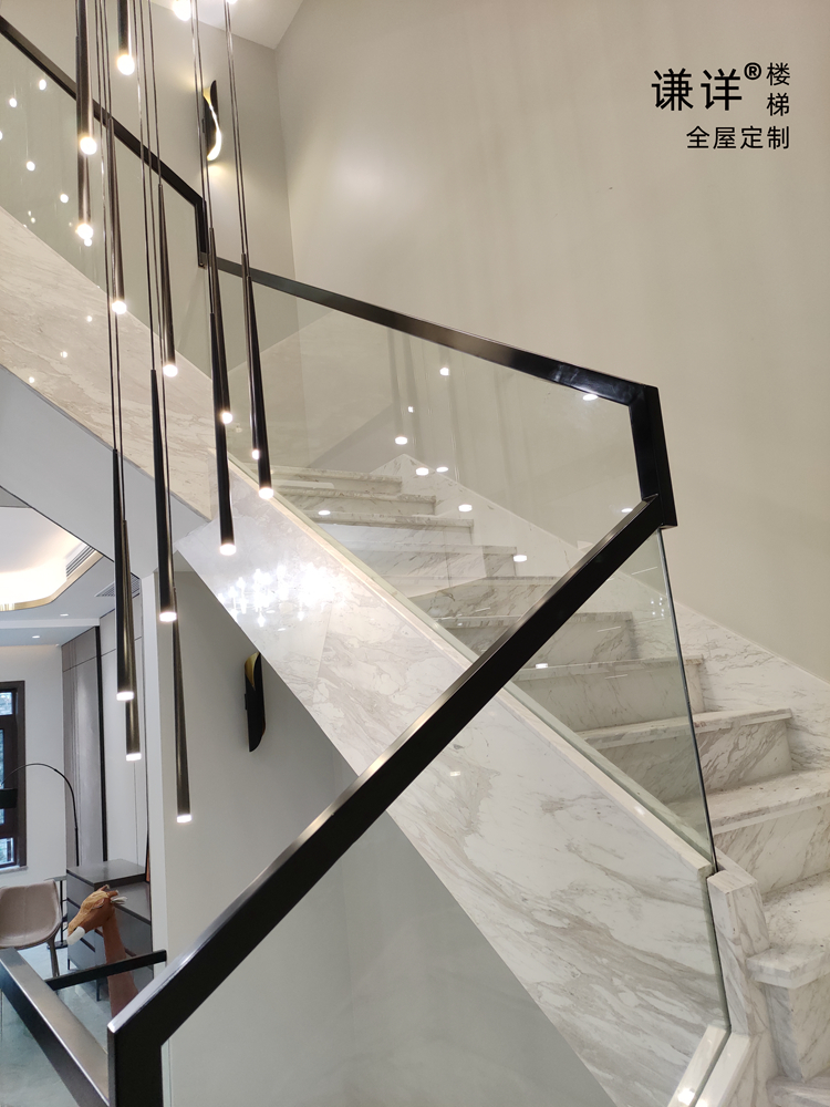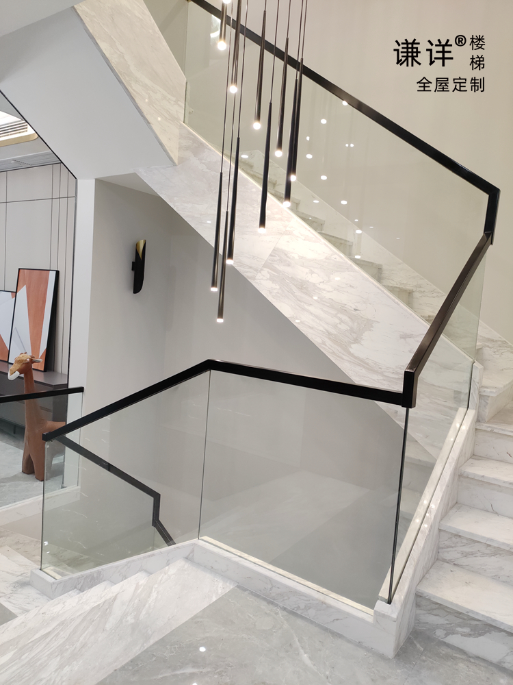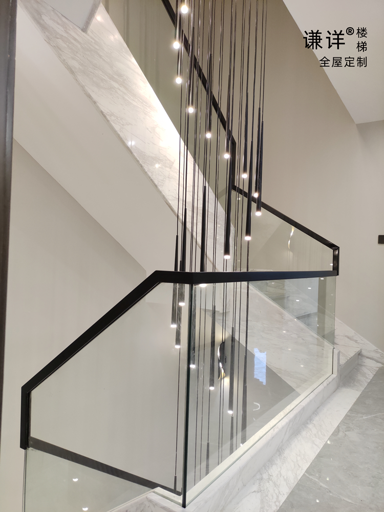 Cầu thang kính Trùng Khánh lan can lan can hiện đại tối giản lan can đá bậc thang ánh sáng sang trọng tùy chỉnh cửa đo và lắp đặt